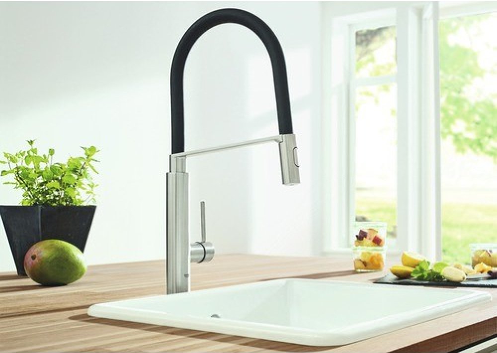 s flexibilní hygienickou GROHFlexx kitchen hadicí z materiálu santoprene