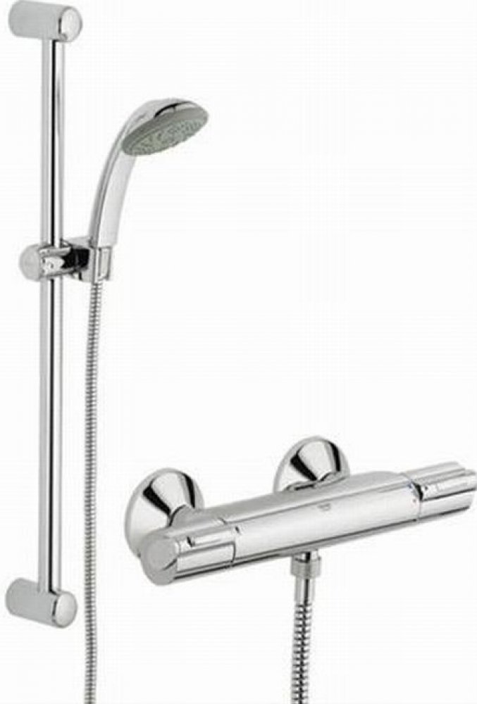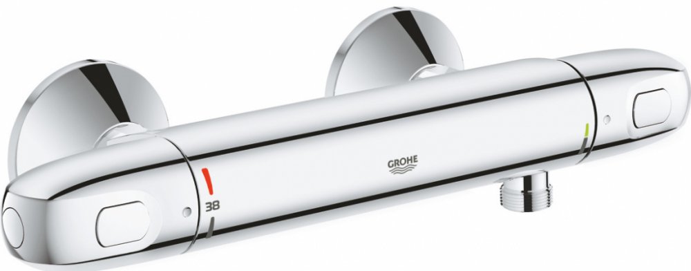 GROHE Grohtherm 1000 New – termostatická sprchová baterie s technologií GROHE CoolTouch® pro komfort v koupelně, na který se můžete spolehnout Znáte ten pocit, kdy stojíte ve sprše a najednou se tekoucí voda stane ledově studenou, protože někdo pustil na jiném místě v domácnosti vodu? Díky této sprchové baterii se již podobná situace nebude opakovat! Může za to technologie GROHE TurboStat®, která zajišťuje okamžité dosažení požadované teploty vody a její udržení. Tlačítko SafeStop zabraňuje, aby teplota vody překročila 38 °C. Pro nastavení vyšší teploty je zapotřebí tlačítko SafeStop stisknout. Technologie GROHE CoolTouch® zabraňuje nadměrnému zahřívání těla termostatické baterie. V rámci ochrany životního prostředí je součástí také tlačítko EcoButton, které umožňuje šetřit vodou při sprchování. Se svými ergonomickými, kovovými rukojeťmi a zářivým chromovým povrchem GROHE StarLight® bude tato termostatická baterie fantastickým doplňkem vaší koupelny. Montáž vaší nové termostatické baterie zabere minimum času, jelikož se instaluje ke stávajícím přípojkám ve zdi.Spolehlivá technologie GROHE TurboStat zajišťuje stálou teplotu vodyGROHE CoolTouch – nikdy příliš horkýTechnologie GROHE EcoJoy® s funkcí úspory vody pro snížení spotřebyEcoButton – snižte spotřebu vody až o 50% stisknutím jediného tlačítkaSnadné čištění díky chromovanému povrchu GROHE StarLight®Tlačítko SafeStop pro ochranu před popálenímGROHE EasyLogic – jednoznačné symboly na těle baterie, které usnadňují její ovládání Aqua Paddle: ergonomický tvar a snadné zacházeníGROHE MetalGrip – vysoce kvalitní kovové rukojeti pro prvotřídní ergonomii a výdržGROHE Grohtherm 1000 New – precizní termostatická technologie do vaší koupelnyPraktičnost, pohodlí a bezpečnost – sofistikované technologie a výjimečná použitelnost jsou klíčovými vlastnostmi vodovodních baterií řady GROHE Grohtherm 1000 New. Široká škála modifikací u produktů této řady skutečně nenechává nic náhodě. K dispozici je nástěnná nebo podomítková varianta bez nebo včetně sprchového setu, technologie GROHE TurboStat® pro udržování stálé teploty, omezovací tlačítko SafeStop či technologie GROHE CoolTouch®, která zabraňuje nepřiměřenému zahřívání povrchu baterie. Díky technologii GROHE EcoJoy® jsou všechny termostatické baterie a sprchy této řady vysoce úsporné. Jejich elegantní, atraktivní design, ergonomické kovové rukojeti a zářivý chromový povrch GROHE StarLight® dokonale zapadne do různých typů koupelnových interiérů, od těch velkých a luxusních po malé koupelny pro hosty. Vzhledem k široké škále různých modelů představuje tato produktová řada dokonalé řešení pro každou koupelnu.Specifikace:Grohtherm 1000Termostatická sprchová baterie, DN 15 montáž na stěnu GROHE CoolTouch technologie zabraňující opaření GROHE StarLight chromový povrch GROHE MetalGrip ergonomicky tvarovaná kovová raménka GROHE SafeStop bezpečnostní zarážka při 43°C GROHE SafeStop Plus (volitelný) dodatečný omezovač teploty při 43°C kompaktní kartuše s termoprvkem integrovaný uzávěr smíšené vody ovládání průtoku s úsporným tlačítkem a individuálně nastavitelnou úspornou zarážkou keramický vršek DN 15, 180° výstup sprchy dole DN 15 integrované zpětné klapky síťka na nečistoty zajištěno proti zpětnému toku S-přípojky kovová rozeta minimální tlak 1,0 bar GROHE EcoJoy technologie pro nízkou spotřebu vody a perfektní průtok
