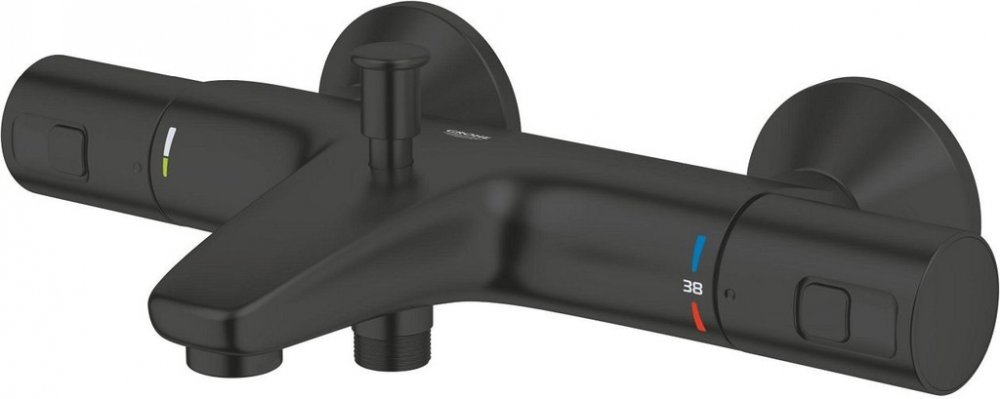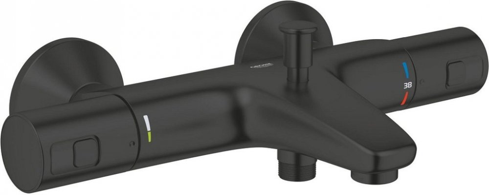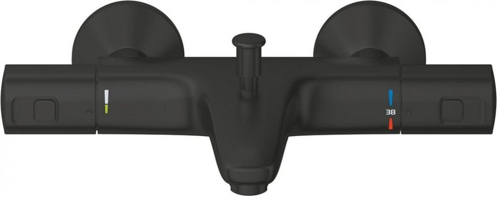 Termostatická vanová bateriebarva matná černáGROHE Long-Life povrchnástěnná montáždélka výtoku 168 mmrozteč 150 mm, S-přípojkykulaté krycí rozety, průměr 70 mmGROHE TurboStat kompaktní kartuše s voskovaným termočlánkemGROHE SafeStop bezpečnostní zarážka na 38 °CGROHE Water Saving pro nízkou spotřebu vody a perfektní průtokautomatické přepínání vana/sprchaomezovač průtoku na kohoutku ovládáníkerami...