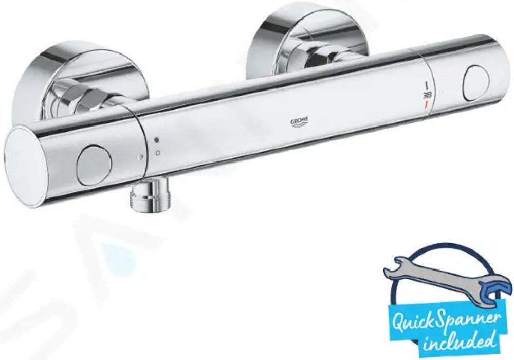 Termostatická sprchová baterie GROHE Precision Get kombinuje styl, bezpečnost a pohodlí díky inovativním rukojetím MetalGrip. Upgradujte výhody termostatického sprchování a nabízí větší pohodlí. Technologie GROHE TurboStat vám umožní vychutnat si vodu, která má vždy ideální teplotu bez výkyvů. Samozřejmostí je také bezpečnost, což z ní činí ideální volbu pro rodinné koupelny – dětem zabrání v přílišném zvýšení teploty tlačítko GROHE SafeStop, nastavené na 38 °C, a omezovač teploty GROHE SafeStop Plus, který lze nastavit na další limit 43 °C. Ovládání je také snadné pro každého – rukojeť GROHE MetalGrip se skrytým okrajem Ergorim na zadní straně rukojeti se skvěle drží, a to i mokrýma nebo namydlenýma rukama. Baterie je vybavena funkcí GROHE EcoJoy, která šetří vodu bez námahy. Požadujete plný průtok? Pro uvolnění rukojeti stačí stisknout tlačítko EcoButton. Tato elegantní baterie je opatřena odolnou technologií GROHE StarLight, která zajišťuje dlouhotrvající třpytivý vzhled.