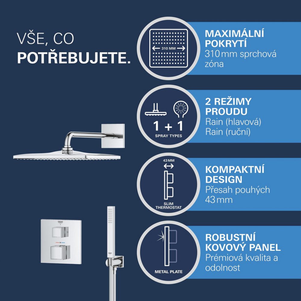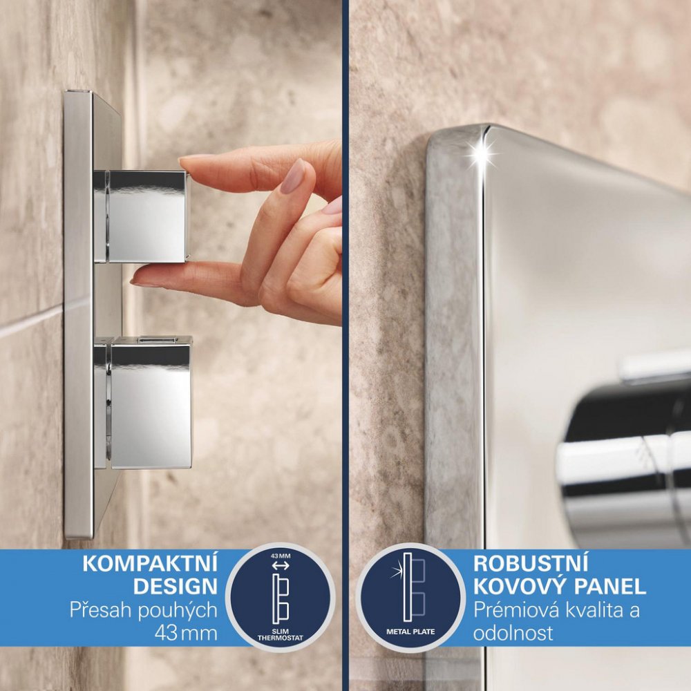 volitelný systém GROHE SafeStop Plus - umožňuje přidat limit 43 °C pro vyšší úroveň bezpečnosti