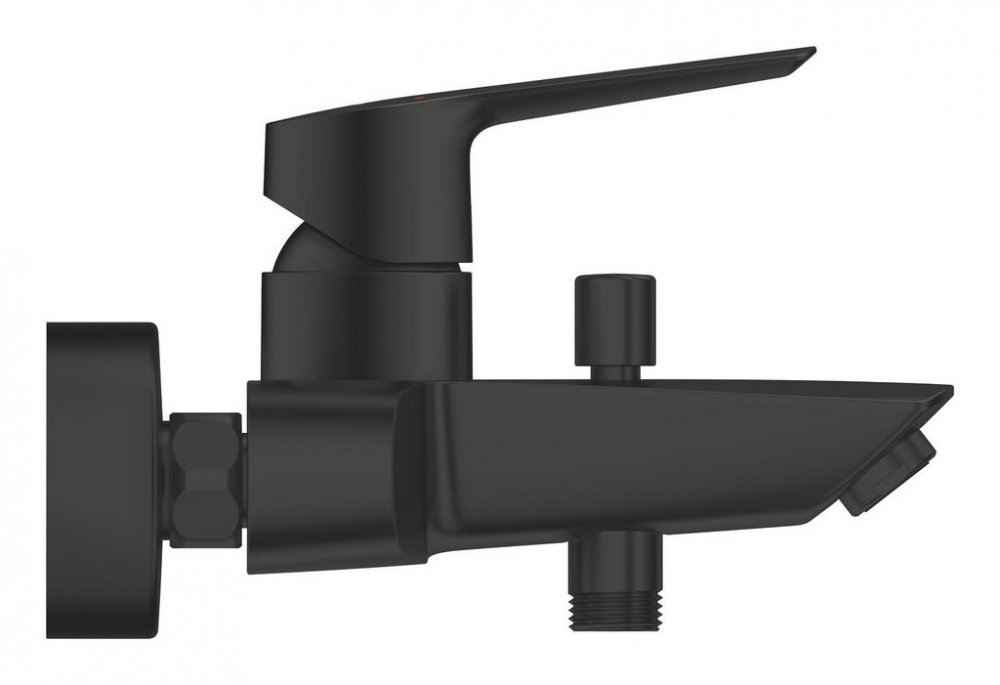 Vanová páková bateriebarva matná černáGROHE Long-Life povrchnástěnná montážbez příslušenstvírozteč 150 mm, S-přípojkydélka výtoku 188 mmkovová ovládací pákakulaté krycí rozety, průměr 70 mmGROHE Long-Lifekeramická kartuše 35 mmautomatické přepínání vana/sprchazajištění proti zpětnému tokunastavitelný perlátor, 38°připojení G 1/2" Dodejte své koupelně novou koupelnovou baterií GROHE Start ve stylovém matně černém provedení svěží nádech – vynikající funkce se setkávají s rafinovaným designem. Plynulé a lehké ovládání a také jasné a moderní linie – náš bateriový beststeller je nyní ještě lepší. Nová kolekce GROHE Start byla přepracována a zlepšena v ohledu na vzhled a funkčnost pro požadavky moderních koupelen. Nabízí štíhlý moderní vzhled a nyní také ještě větší komfort. Tato elegantní matně černá jednopáková koupelnová baterie pro montáž na stěnu je vybavena jednou robustní kovovou pákou pro snadné ovládání. Díky keramické kartuši GROHE SilkMove lze snadno a přesně ovládat množství a teplotu vody – každý rok. Nastavitelný omezovač průtoku snižuje spotřebu vody. Omezovač teploty šetří energii. Praktickým automatickým přepínáním můžete zcela snadno přepínat mezi proudem vany a sprchy. A přidejte si jednoduše ruční sprchu GROHE dle vašeho výběru. S ní bude oplachování šamponu ve vaně učiněným potěšením. Zpětný ventil integrovaný v odvodu sprchy chrání před zpětným zatékáním použité vody do vodovodního vedení. S robustní povrchovou vrstvou GROHE Long-Life Shine, která zároveň umožňuje snadnou údržbu, se bude vaše koupelnová baterie dokonale zářivě lesknout i po mnoha letech. GROHE Start – moderní kolekce, která v sobě spojuje eleganci s výkonem!