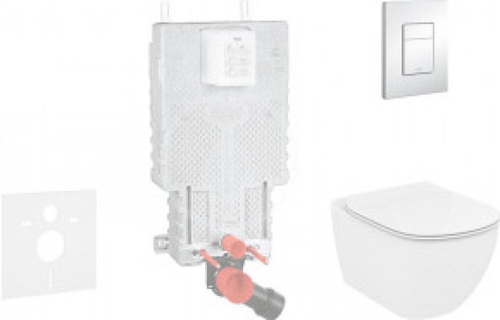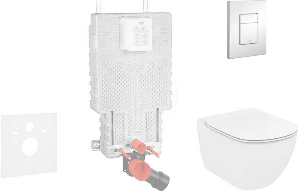 Kompletní instalační set pro závěsné WC AQUABLADE® inovativní technologie splachování SoftClose mechanismus pozvolného sklápění sedátka Obsahuje předstěnový instalační prvek Grohe Uniset pro závěsné WC (38643001) soupravu pro tlumení hluku (SP 156SET) závěsné WC Ideal Standard Tesi (T354601) ultraploché WC sedátko Ideal Standard Tesi (T352701) 2-činné ovládací tlačítko Grohe Skate Cosmopolitan, ch...