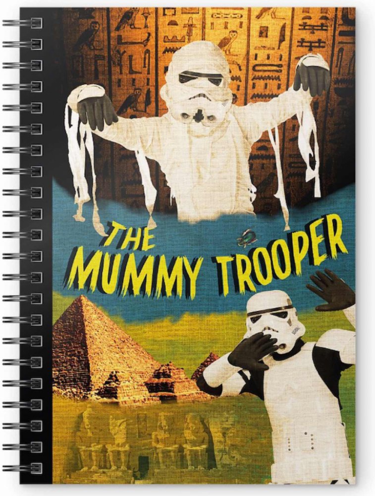Blok A5 Star Wars – The Mummy Trooper Vtipný čtverečkovaný blok A5 v kroužkové vazbě s alegorickým motivem mumifikovaného Stormtroopera. Oficiální blok s grafikou slavné filmové ságy STAR WARS / HVĚZDNÉ VÁLKY. Zboží je legálně licencováno a prodáváno se souhlasem vlastníků licenčních práv.