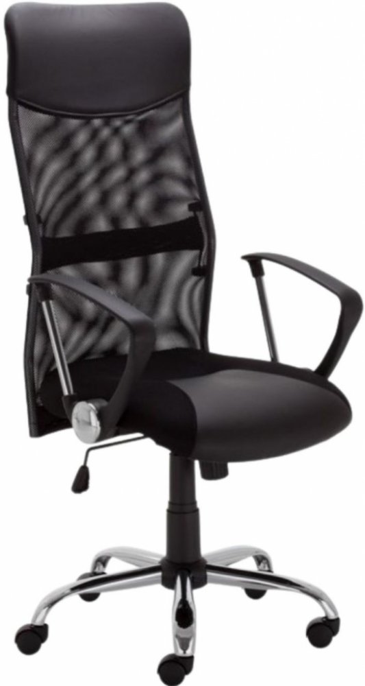 Oblíbené kancelářské křeslo Plus s vysokým opěradlem.Jedná se o model, doporučený pro lidi, kteří hledají dobrou oporu zad a pohodlí při práci u počítače.Křeslo Plus se vyznačuje vysokým síťovaným opěrákem s nastavitelným bederním profilem (funkce nahoru-dolů).Mechanismus Tilt,který je použit v tomto modelu křesla, umožňuje "houpání se" v křesle nebo také aretaci opěradla v určité poloze.Odpor křesla při náklonu je nastavitelný, díky čemuž se opěradlo přizpůsobí hmotnosti uživatele.Pokud zvolená poloha není zablokovaná, opěradlo neustále sleduje pohyb zad uživatele a zaručuje mu přiměřenou oporu po celé délce.Sedák společně s opěradlem tvoří jeden celek.Plynule nastavitelná výška sedáku díky pneumatickému pístu.Opěradlo je čalouněno prodyšnou síťovinou, horní část opěradla je čalouněna eko - kůží.Sedák je čalouněn potahem s membránou a eko - kůží.Křeslo je dostupné pouze v černé barvě, tak jak je vyobrazeno na fotografiích.Loketní opěrky v křesle Plus jsou pevné, vyrobené z odolného