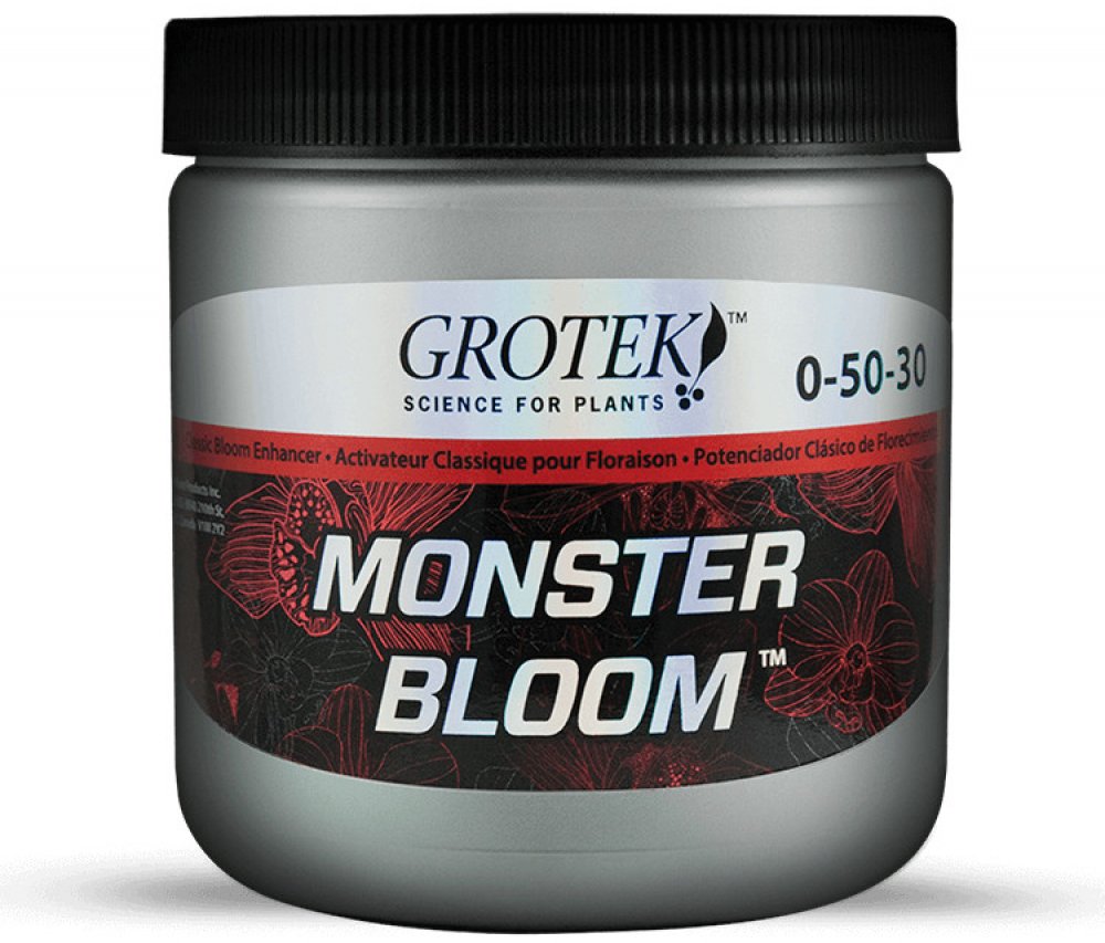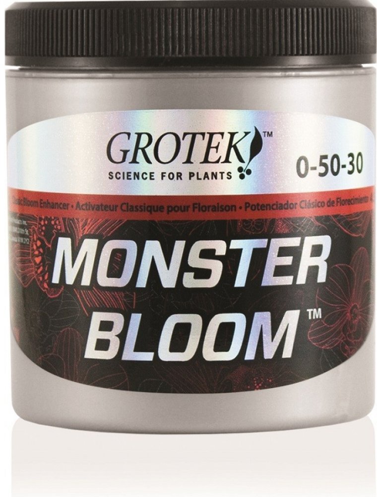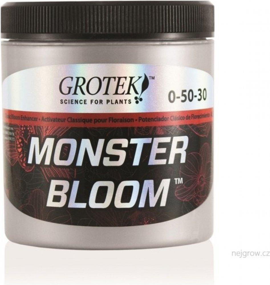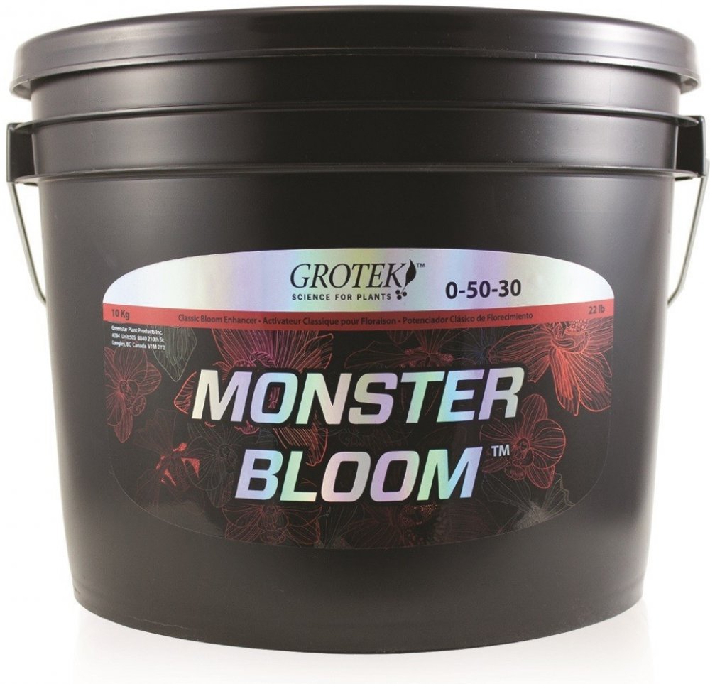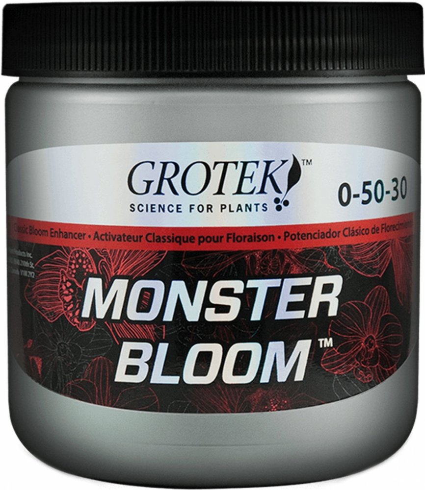 Grotek Monster Bloom je silný květový stimulátor obsahující všechny základní živiny, které rostliny potřebují pro maximální produkci. Jeho hlavním úkolem je vybudit rostlinu ke zvýšené produkci velkých květů a zajistit rychlé a kvalitní dozrávání. Je vhodný pro pěstování ve všech médiích.