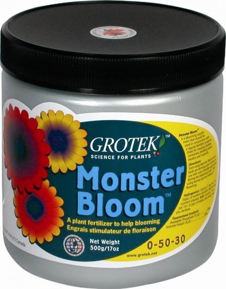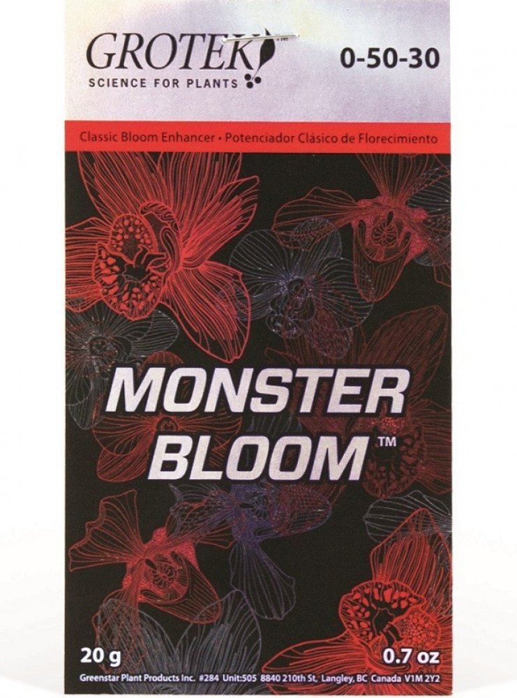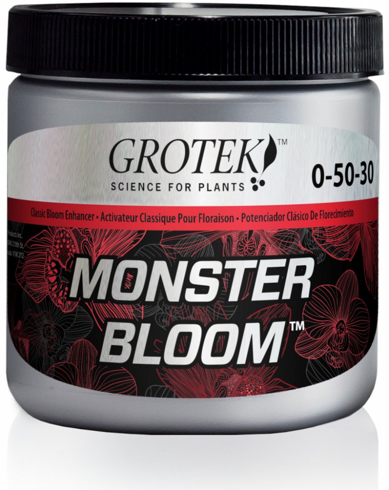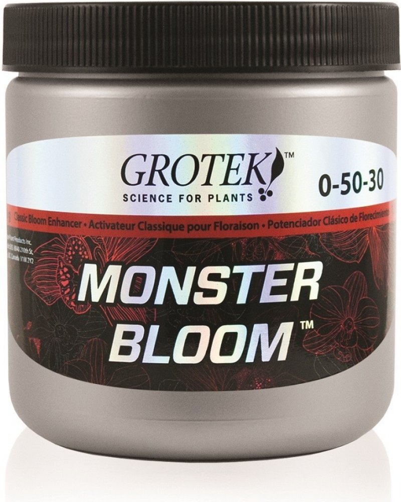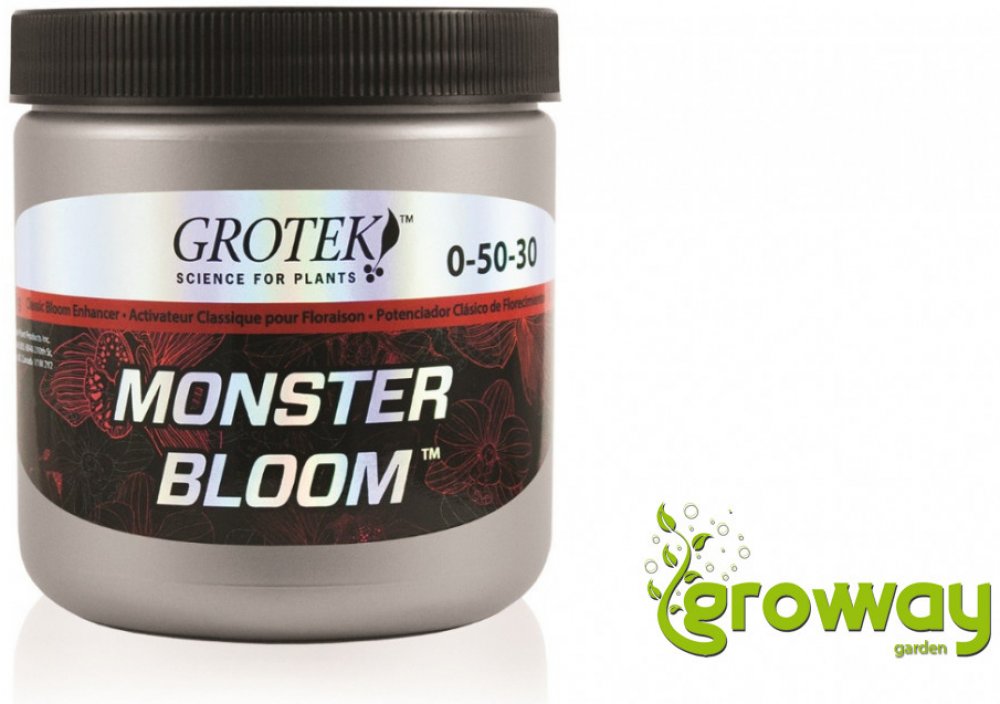Grotek Monster Bloom je silný květový stimulátor obsahující všechny základní živiny, které rostliny potřebují pro maximální produkci. Jeho hlavním úkolem je vybudit rostlinu ke zvýšené produkci velkých květů a zajistit rychlé a kvalitní dozrávání. Je vhodný pro pěstování ve všech médiích.