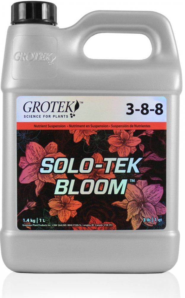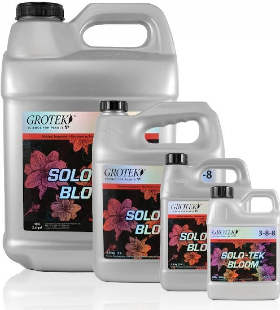 Grotek Solo-Tek Bloom je jednosložkové tekuté hnojivo, které podporuje mohutnou produkci květů rostlin. Jde o kombinaci makro a mikroživin spolu s organickými sloučeninami, jako je např. řasa. Hnojivo je vhodné pro všechny typy rostlin a pro všechny typy pěstebních médií.