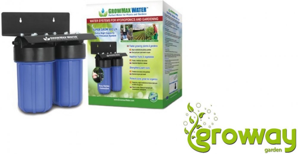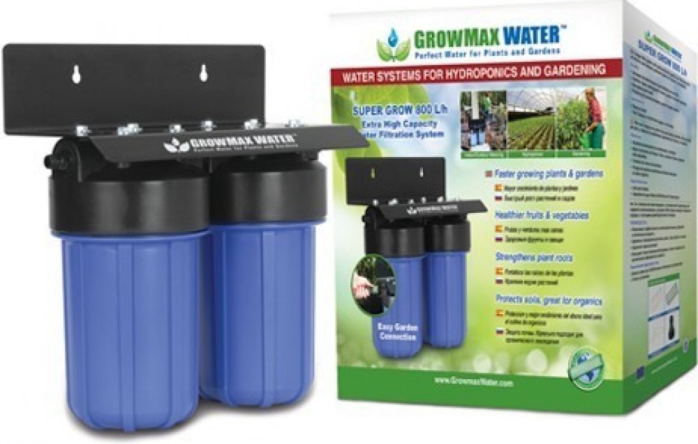 Dvoustupňový vodní filtr SUPER Grow 800 je určen pro okamžité odstranění chlóru a mechanických nečistot z vody. Takto odfiltrovanou vodu ocení především uvědomělí pěstitelé dbající na celkovou kvalitu pěstebního procesu. Díky vyššímu výkonu je vhodný pro velké zahrady, terasy nebo školky.