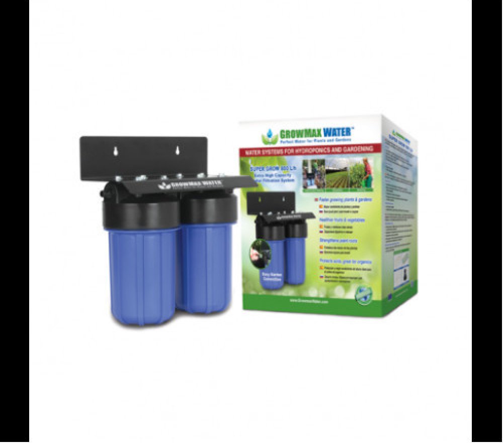 Systém SUPER Grow 800 od Growmax Water se skládá z hlavní jednotky, dvou konektorů na hadici, filtru na sedimenty a uhlíkového filtru ze zelených kokosů. Bonusem je montážní konzole k uchycení na zeď. Tento filtrační systém SUPER Grow 800 není určen ke snížení ppm ve vodě. Nepoužívejte nikdy horkou vodu. Neinstalujte systém kdekoli je vodní tlak vyšší než 90psi (6k/cm2).