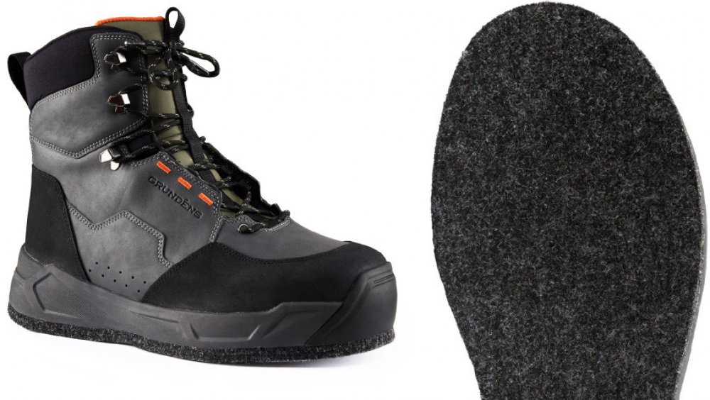 Svršek Bedrocku je vyrobený z voděodolné nubukové kůže a je vyztužen odolnými překryvy, které chrání botu před odřením o ostré kameny. Pevná gumová podrážka poskytuje vynikající trakci a je kompatibilní se sadou hrotů a cvočků Grundéns. Mezipodešev EVA s tvarovanou oporou paty zajišťuje celodenní komfort a bezpečně drží nohu při brodění. Šněrování je skryté, aby bylo minimalizované opotřebení neoprenových ponožek vašeho brodícího obleku, zatímco odolné koroziodolné komponenty jsou bezpečné pro použití ve slané vodě.