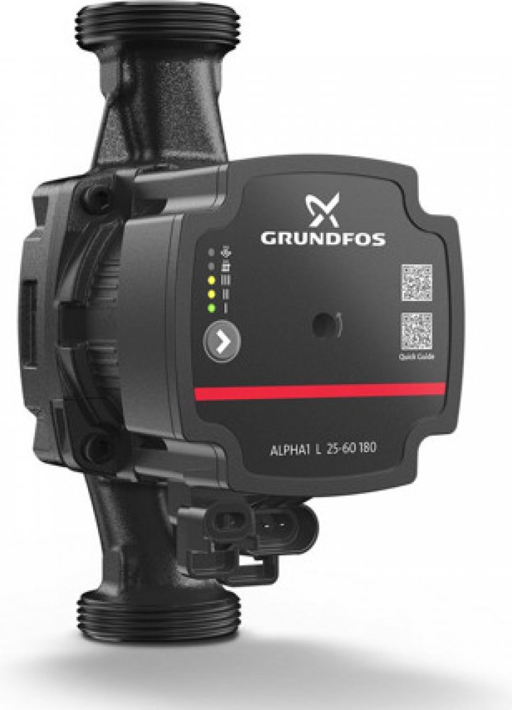 Grundfos ALPHA1 L 15-60 130 je vysoce účinné oběhové čerpadlo s motorem s permanentními magnety ECM technologie).Čerpadlo má tři regulační režimy – režim pro soustavy s otopnými tělesy, podlahové vytápění a 3 křivky konstantních otáček.Navíc mohou být otáčky řízeny nízkonapěťovým PWM modulace šířkou impulsů) signálem.Čerpadlo má keramický hřídel a radiální ložiska, uhlíkové axiální ložisko, klec r...