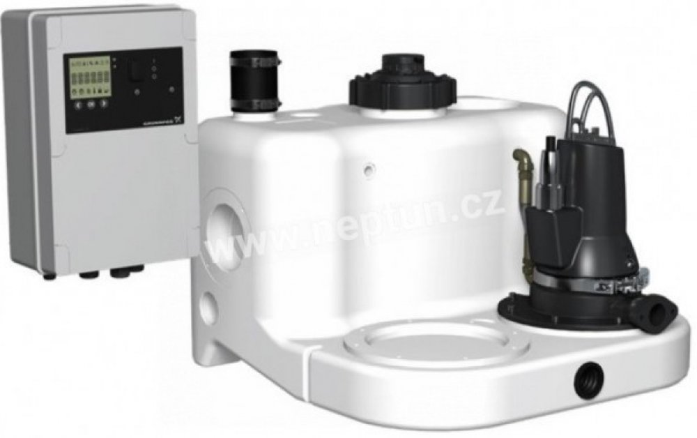 Popis:Multilift se dodává jako kompletní jednotka připravená k instalaci a zahrnuje plně integrovanou sběrnou nádrž s brusným čerpadlem a ponorným motorem namontovaným na sběrné nádrži a předzapojenou řídicí jednotku, včetně snímače hladiny. (Zpětné ventily a výtlačné potrubí jsou k dispozici jako příslušenství)Plně integrovaná sběrná nádrž má všechny potřebné porty pro připojení přívodního potrubí, výtlačného potrubí, odvzdušňovacího potrubí a ručně ovládaného membránového čerpadla (příslušenství).Na sběrné nádrži je osazeno 7 přívodních hrdel. Zadní vstup DN100 je umístěn na patentovaném vstupním disku pro plynulé propojení všech vstupních potrubí průměru 180-315 mm. Vstupy DN100 a DN50 na každé straně. Vstupy DN150 a DN50 na horní části nádrže. Korozivzdorné polyetylenové sběrné nádrže Multilift jsou plynotěsné, vodotěsné a nepropouštějí zápach, zajišťují menší množství zbytkové vody a menší sedimentaci provedením zkosené spodní části.Čerpadlo je vybaveno mělnicím zařízením s vírovým oběžným kolem, ponorným motorem a olejovou komorou s fyziologicky nezávadnou olejovou náplní kolem mechanické hřídelové ucpávky. Výstup čerpadla má vnitřní závity 1 1/4 palce.Řídicí jednotka LC221 s mikroprocesorem je vybavena displejem pro veškerá možná monitorování čerpadla. Čerpadlo a snímač jsou připojeny k řídicí jednotce kabelem a potrubím o délce 10 m. Napájecí kabel má délku 1,5 m a je opatřen zástrčkou (včetně fázového invertoru pro 3fázový motor) Bezkontaktní piezorezistivní snímač tlaku připojitelný uvnitř skříně, monitorovaný řídicí jednotkou s přesností na jeden milimetr a zobrazením na displeji. Neucpávající se tlakové potrubí uvnitř nádrže bez pohyblivých částí v odpadní vodě.Řídicí jednotka zajišťuje tepelnou ochranu motoru a monitoruje provoz čerpadla. Tepelná ochrana motoru sestává z tepelných spínačů ve vinutí.Funkce řídicí jednotky:zapínání/vypínání jednoho čerpadla s řezacím zařízením na základě spojitého signálu z piezorezistivního snímačejističem a/nebo měřením proudu a také připojením tepelných spínačůochrana motoru proti běhu na sucho pomocí omezení doby běhu s následným nouzovým provozem24hodinový automatický zkušební běh během dlouhé doby nečinnostinastavení dob zpoždění:zpoždění zastavení (doba od dosažení zastavovací hladiny do zastavení čerpadla)zpoždění spuštění (doba od dosažení spouštěcí hladiny do spuštění čerpadla)zpoždění alarmu (doba od výskytu poruchy do signalizace alarmu) pro zabránění krátkodobému alarmu vysoké hladiny v případě dočasného vysokého přítoku do nádrže.automatické měření proudu pro signalizace alarmůprovozní signalizace:provozní režim (automatický, ruční)provozní hodinyimpulsy (počet spuštění)nejvyšší naměřený proud motoruvýstražná signalizace:stav čerpadla (běh, porucha)porucha sledu fází a chybějící fázeporucha aktivovaná tepelným spínačemalarm vysoké hladiny vodyinterval servisu/údržby (volitelný).volba automatického resetování alarmůprotokol poruch pro až 20 alarmůvolba mezi různými počátečními hladinamivolba typu připojeného snímačekalibrace snímače (přednastavená)volba intervalu údržby 0, 3, 6 nebo 12 měsíců).LC 221 má standardně 4 beznapěťové výstupy pro:– čerpadlo v provozu – porucha čerpadla – alarm vysoké hladiny – běžná porucha. 6 digitálních vstupů pro následující funkce:– připojení snímače tlaku (předběžně namontováno) – připojení analogového snímače (4–20 mA nebo 0–5 V) – připojení až čtyř hladinových spínačů nebo tlakových spínačů místo analogového snímače – připojení samostatného spínače hladiny, který bude použit pro detekci zaplavení mimo Multilift. Přečerpávací stanice jsou často instalovány v jímce v suterénu – nejnižší místo v budově. V případě například vtékání zemní vody nebo prasklého vodního potrubí bude řídicí jednotka signalizovat alarm. – připojení externího resetu alarmu – připojení tepelného spínače motoruŘada Multilift je navržena podle normy EN12050-1, schválena a monitorována externím institutem LGA. Dalšími osvědčeními jsou VDE, GHOST, CB, EMV