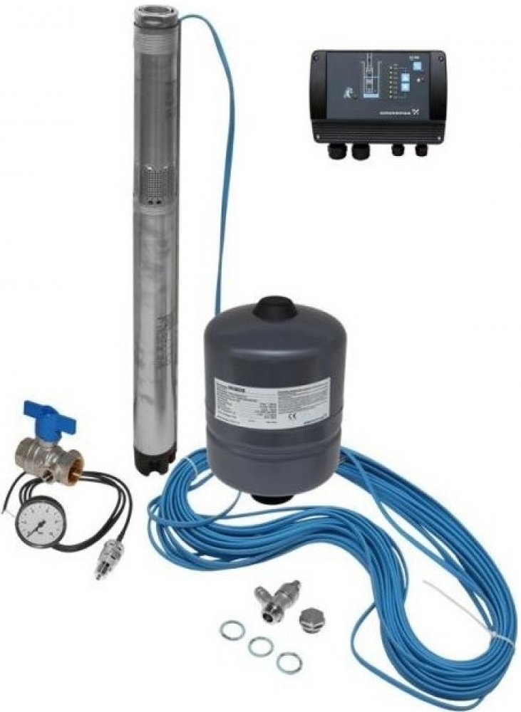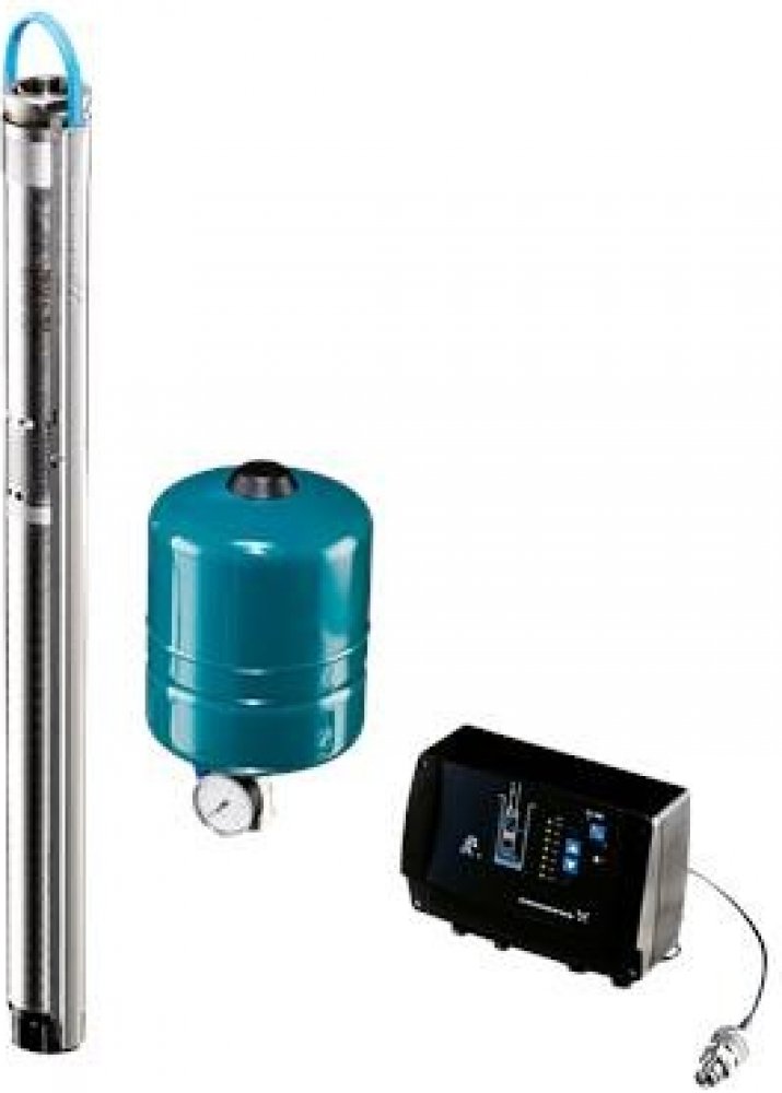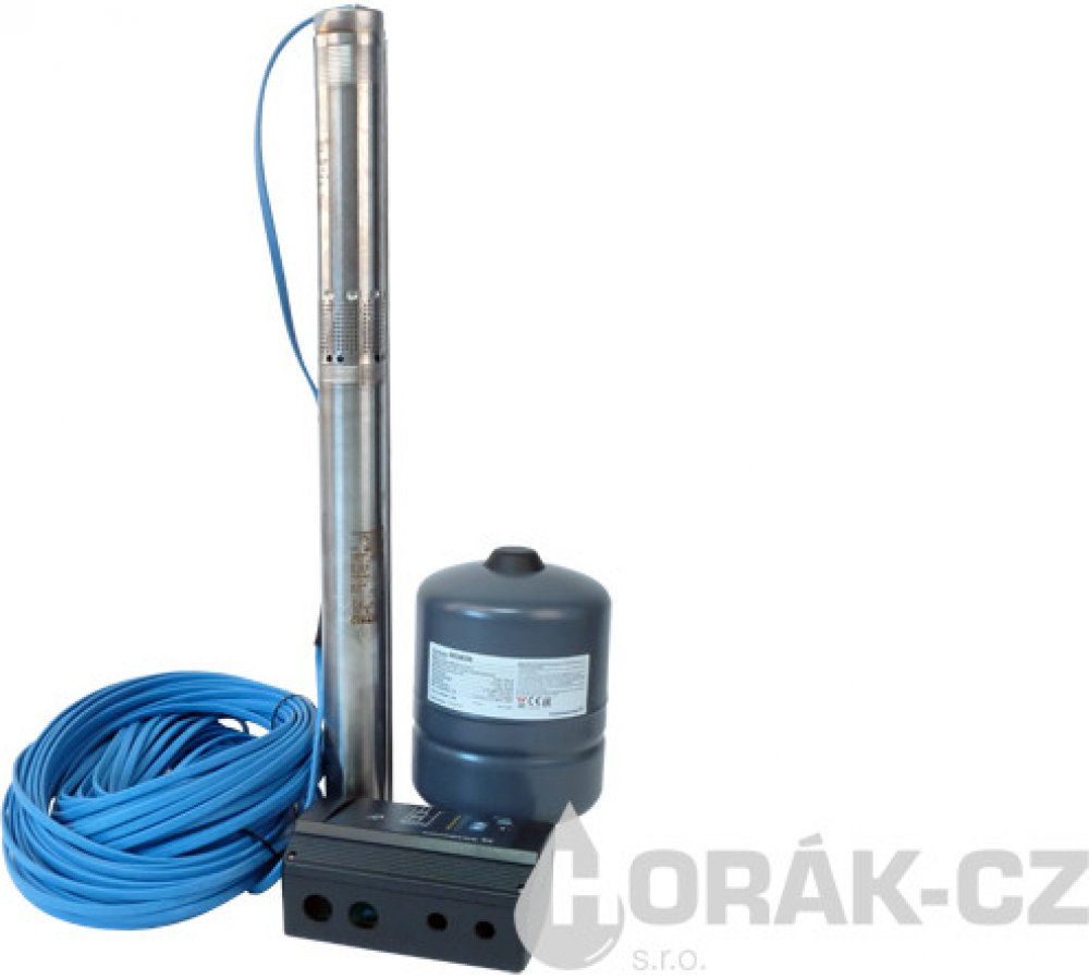 Kompletní sada pro čerpání vody z vrtů, zavlažování, zasobování domácností vodou. Vhodné do úzkých vrtů. . Umožňuje regulaci tlaku vody dle aktuální potřeby. Sada obsahuje 3” čerpadlo s elektronickou regulací na konstatní tlak, havarijní ochranu proti provozu na sucho, tlakovou nádobu, tlakový snímač a řídící jednotku CU301. S atestem na pitnou vodu.