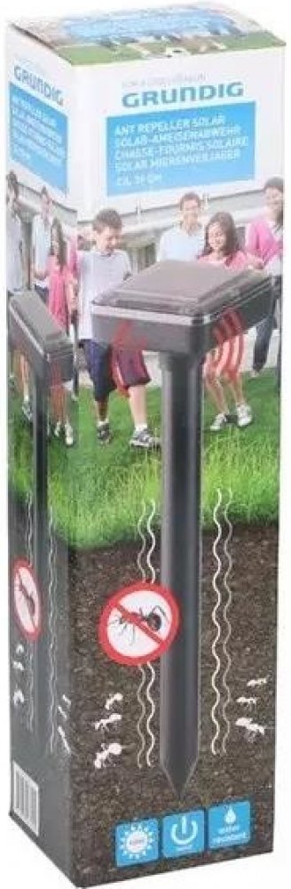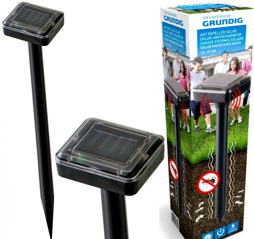 Solární ultrazvukový odpuzovač Grundig vydává zvuk o frekvenci přibližně 500 Hz po dobu asi 2 sekund každých 10-30 sekund. Tento zvuk dráždí mravence a způsobuje jejich odhánění. Systém také vytváří řadu vibrací, které mravence ruší. Lze jej vypnout pomocí ON/OFF tlačítka na spodní straně přístroje. Ostatní zvířata nejsou těmito vibracemi rušena.