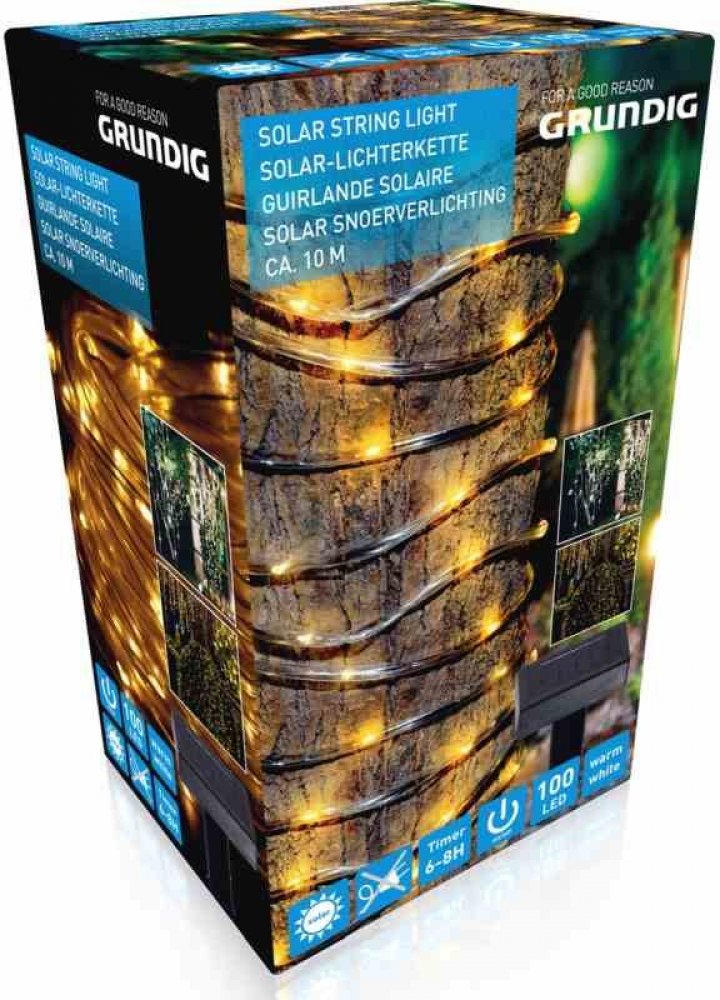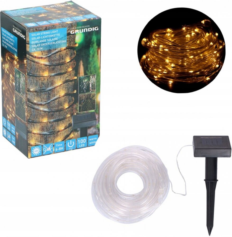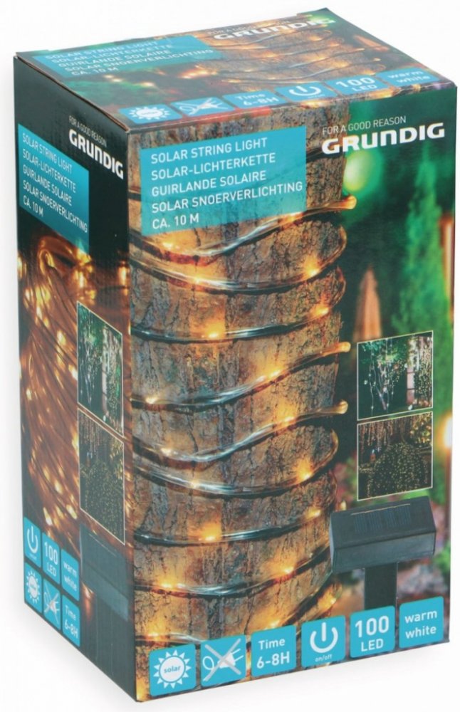 Grundig solární teplá bílá 10 m 100 světelné řetězy a sítě