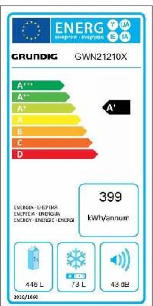 Grundig 1 americké 416 l 73 l 8 kg/24 hod 15 h 43 dB SN-T 399 kWh 179 cm 145 kg