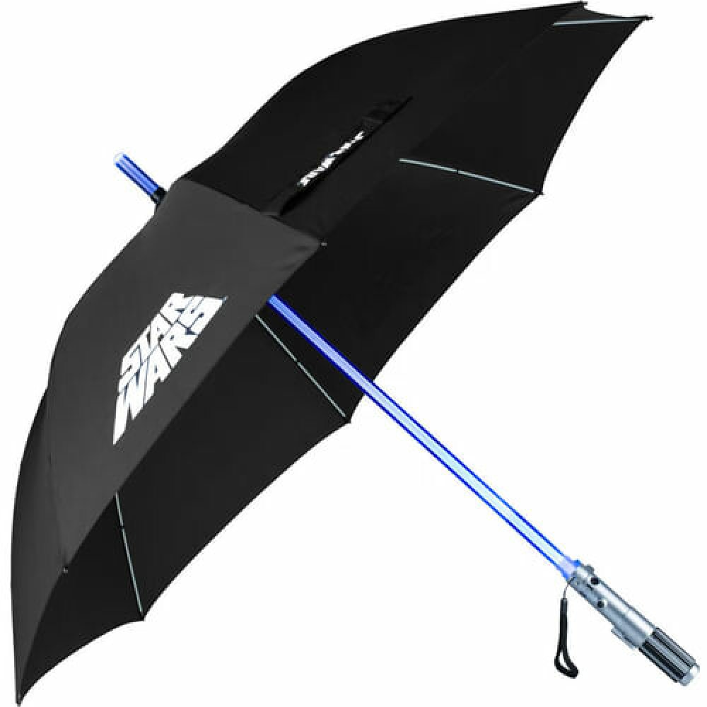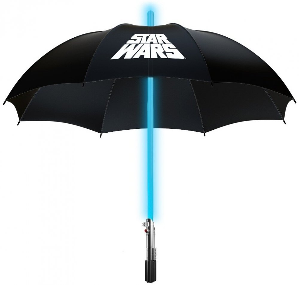 Deštník se svítící rukojetí v podobě světelného meče Luka Skywalkera tě spolehlivě ochrání proti každé nepřízni počasí! Ovládni Světlou stranu Síly spolu s deštníkem pro milovníky světa Star Wars a staň se rytířem Jedi s modrým mečem. Světelný efekt rukojeti je napájen vestavěnou LiPo (lithium-polymerová) baterií.
