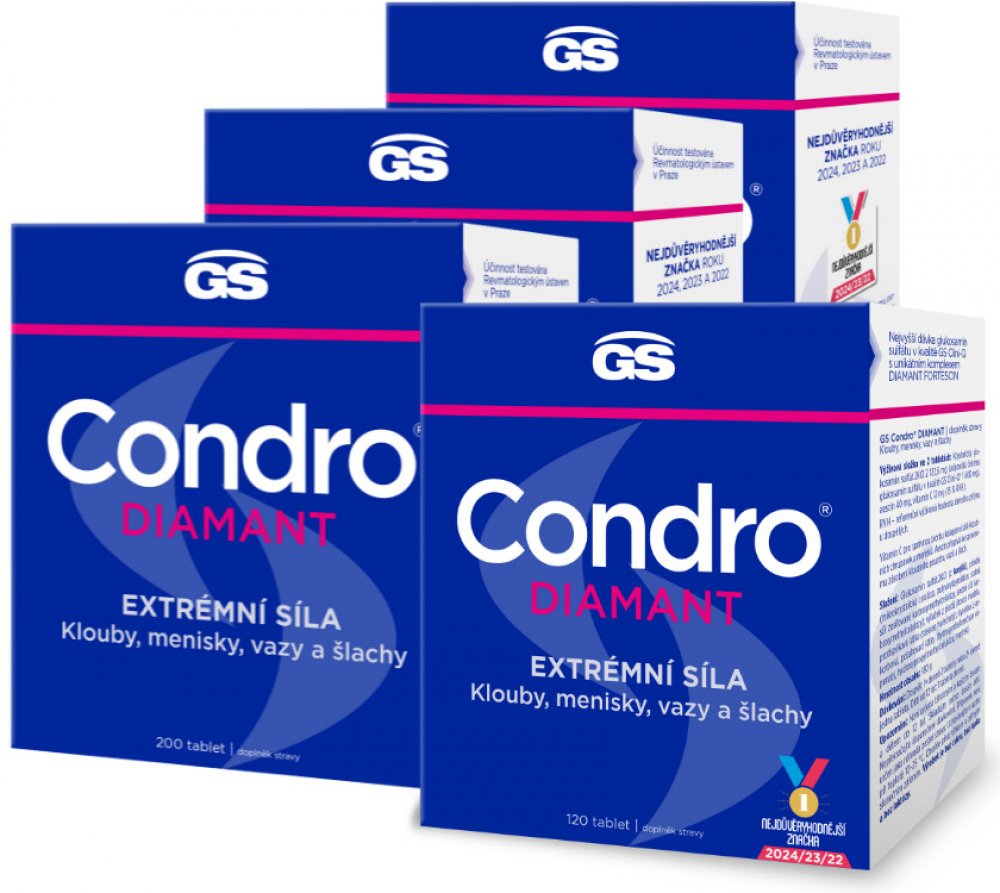 Extrémní síla a maximální úleva pro klouby a jejich okolí. Jedinečná kombinace nejvyšší dávky glukosamin sulfátu v kvalitě Clini-Q® s aescinem a vitaminem C, který přispívá k tvorbě kolagenní sítě kloubních chrupavek. Mimořádný účinek GS Condro® byl prokázán klinickou studií Revmatologického ústavu. Minimální datum spotřeby: 31.8.2022