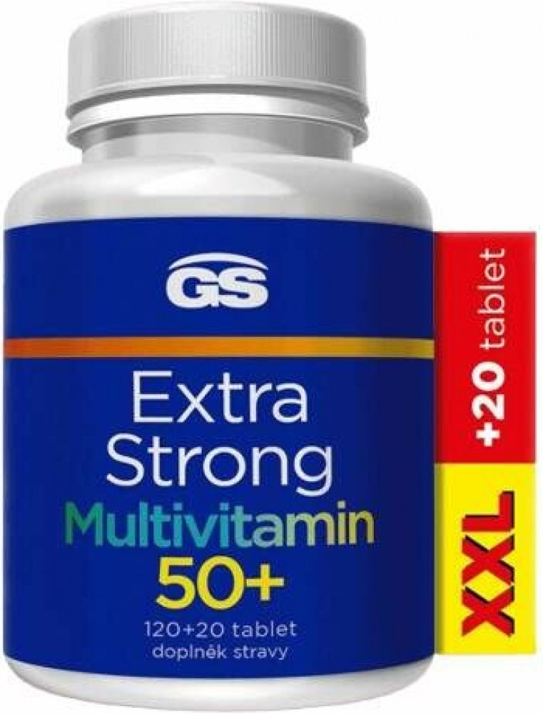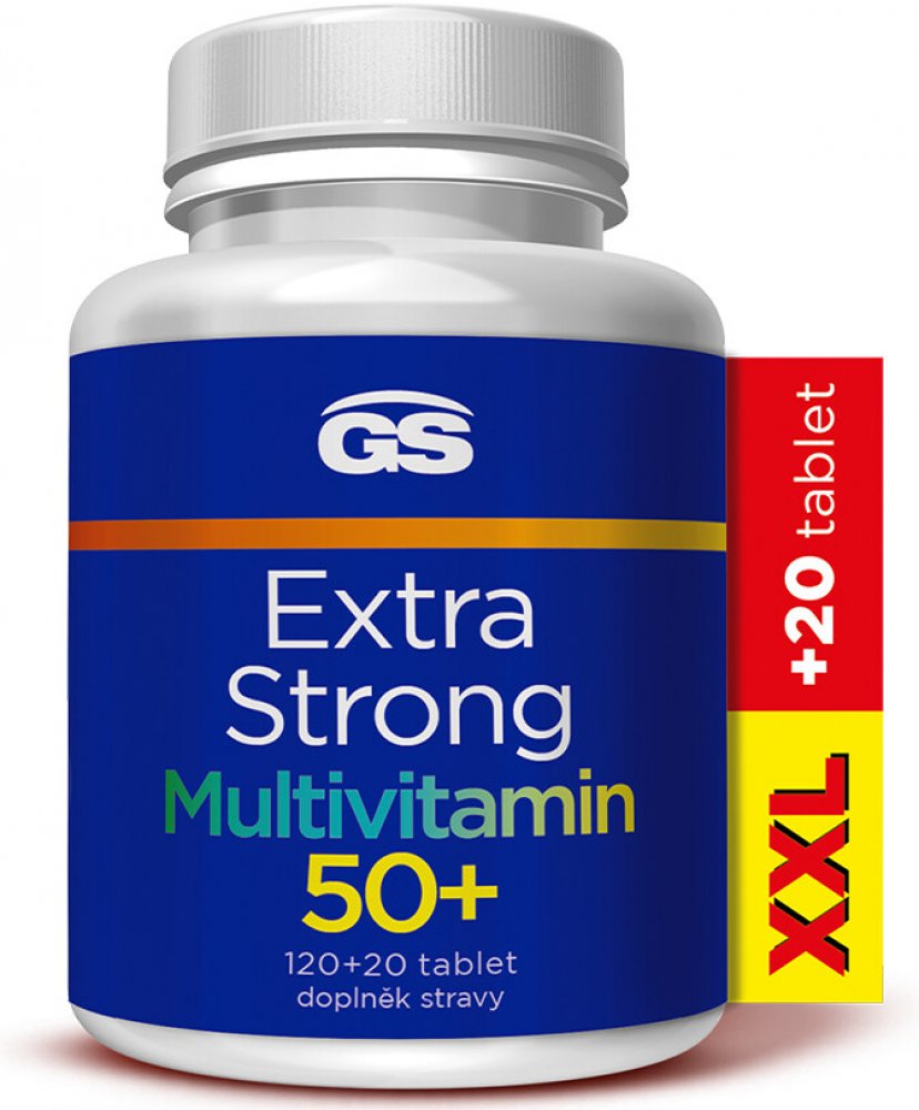 GS Extra Strong Multivitamin 50+ je extra silný, extra účinný multivitamin pro generaci 50+. Komplex 50+ obsahuje sibiřský ženšen pro povzbuzení organismu, ginkgo bilobu pro prokrvení mozku a vysokou dávku vitaminu D3 pro podporu imunity. Nově v tabletách s prodlouženým uvolňováním.
