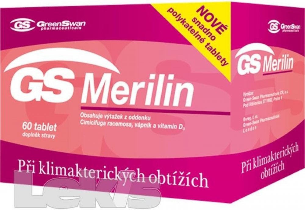 GS Merilin obsahuje standardizovaný extrakt z oddenku rostliny Cimicifuga racemosa, u které bylo v posledních letech řadou klinických studií1potvrzeno příznivé působení na všechny fyziologické jevy provázející klimakterium. Zároveň dodává vápník a vitamin D3, jejichž dostatečný příjem v tomto období je důležitý pro pevnost kostí.