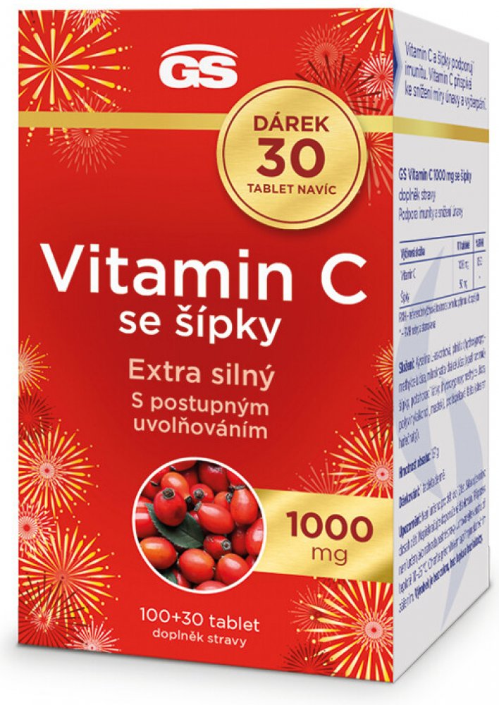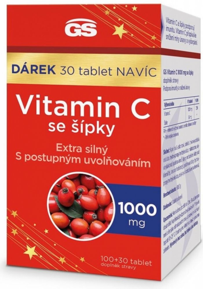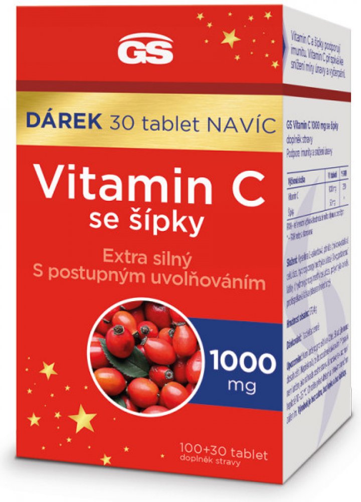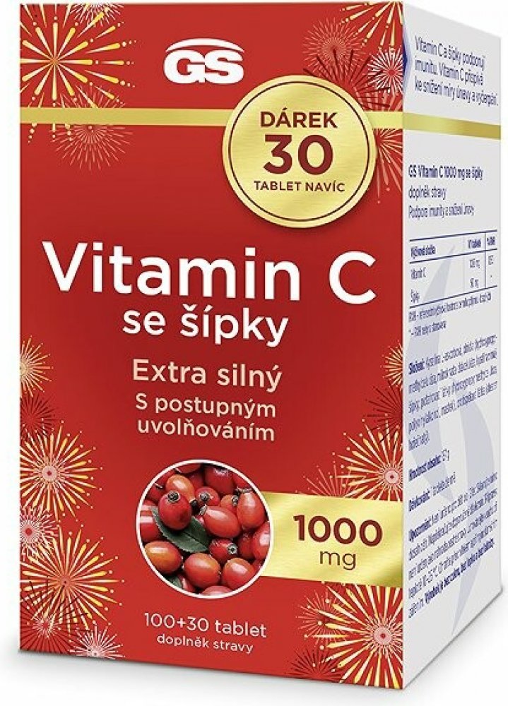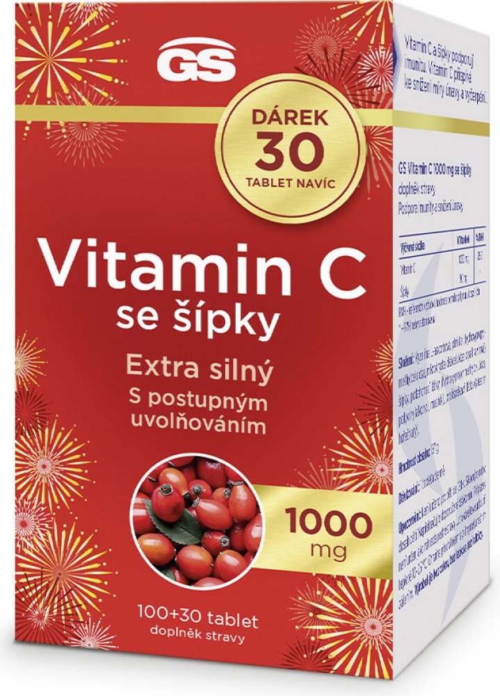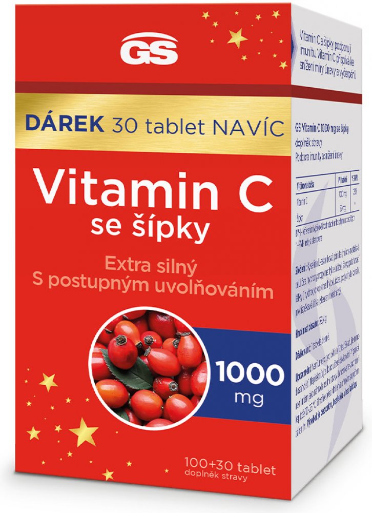 Obsahuje extra dávku 1000 mg vitaminu C v tabletě s postupným uvolňováním. Vitamin C přispívá k normální funkci imunitního systému a snižuje únavu. Navíc obsahuje šipky, zdroj flavonoidů.