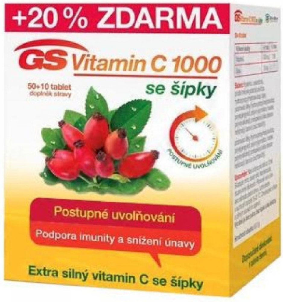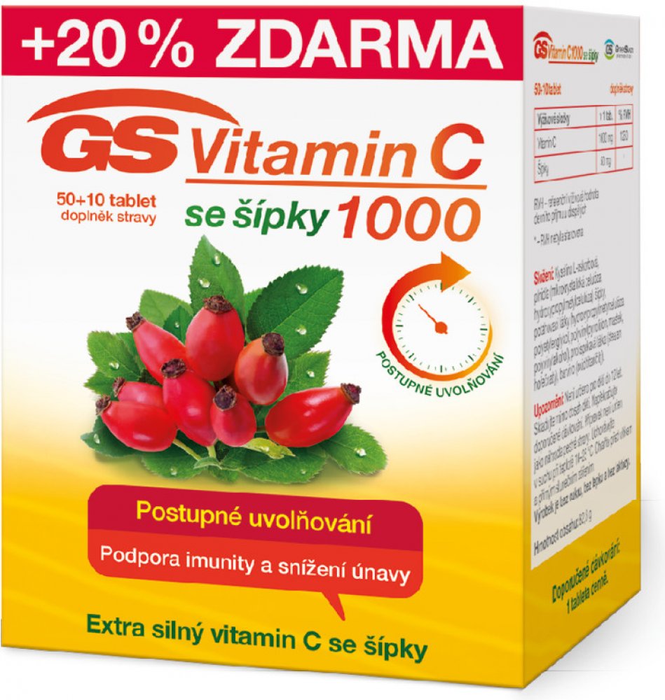 Složení: Kyselina L-askorbová, plnidla (mikrokrystalická celulóza, hydroxypropylmetylcelulóza), šípky, potahovací látky (hydroxypropylmetylcelulóza, polyetylen...