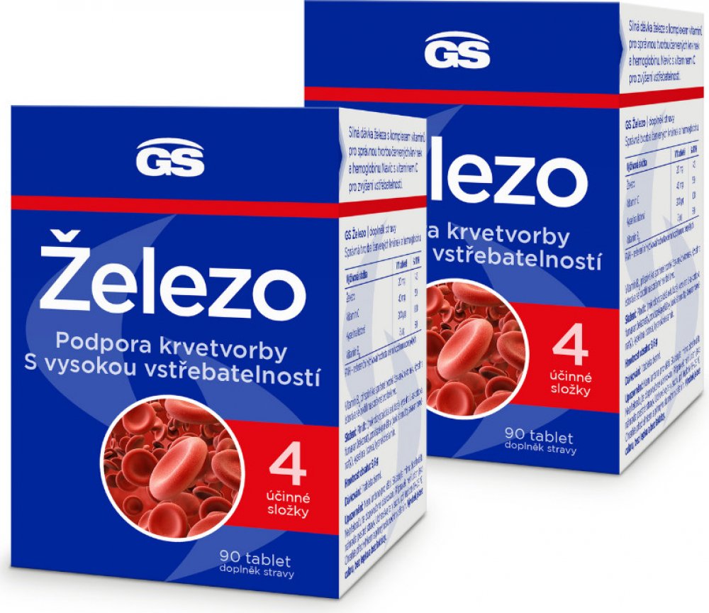 GS Železo přípravek obsahuje zvýšené množství železa, které je důležité pro krvetvorbu, především pro tvorbu červených krvinek a barviva hemoglobinu sloužícímu k přenosu kyslíku v těle.