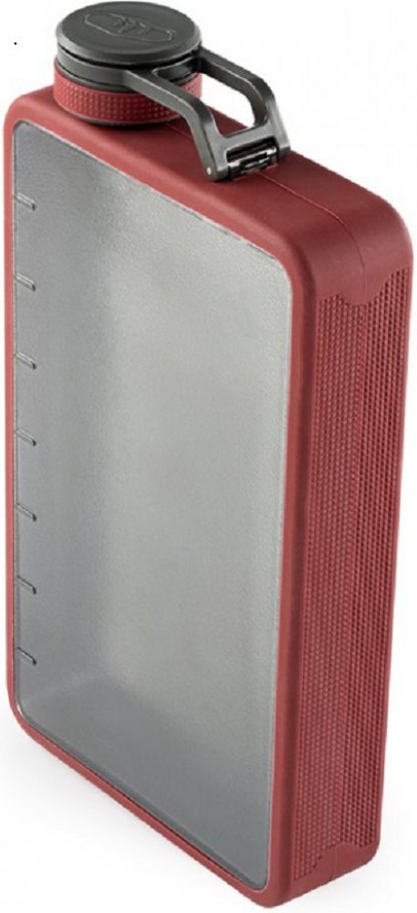 Boulder Flask je stylová 475 ml průhledná placatka z velmi odolného plastu a šroubovacím uzávěrem. Obvodový silikon těla zaručuje pevné a bezpečné uchopení při manipulaci. Díky širokému hrdlu se placatka jednoduše plní, vymývá a hlavně se z ní komfortně pije. Dalším doplňkem, který oceníte zejména v zimě je pogumovaný obvod uzávěru, pomocí kterého snadno placatku otevřete i v rukavici. Průhledný design samozřejmě nese výhody v přehledu stavu obsahu při plnění i jeho následném ubývání.