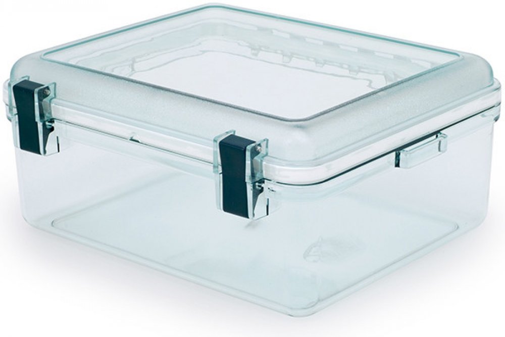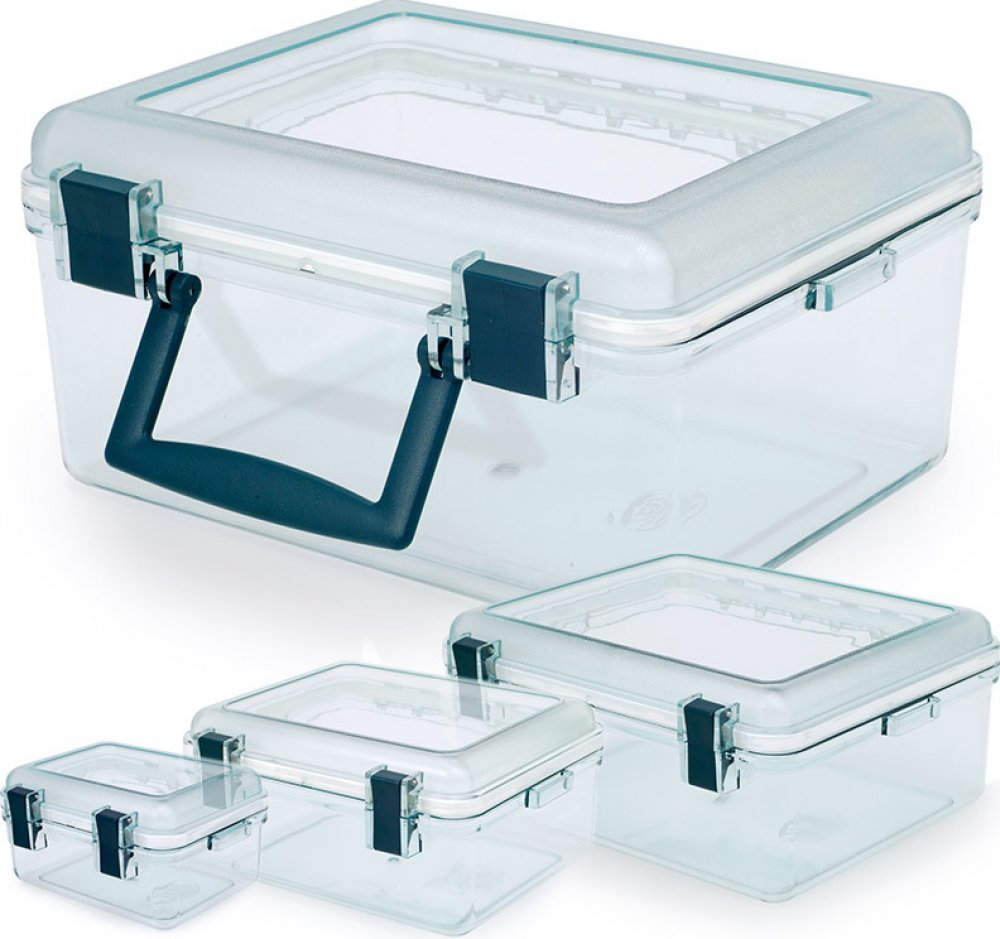 Vodotěsný box různých velikostí pro uchovávání fotoaparátů, svačiny, knihy... Prostě všeho, co by jste po výletě chtěli najít suché. Vodotěsnost je zabezpečena dvojitým těsněním. Nepromokavý box je vyroben z téměř nerozbitné pryskyřice Lexan. Na boxu se nachází ucho pro snazší manipulaci.