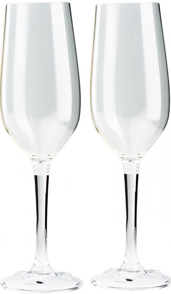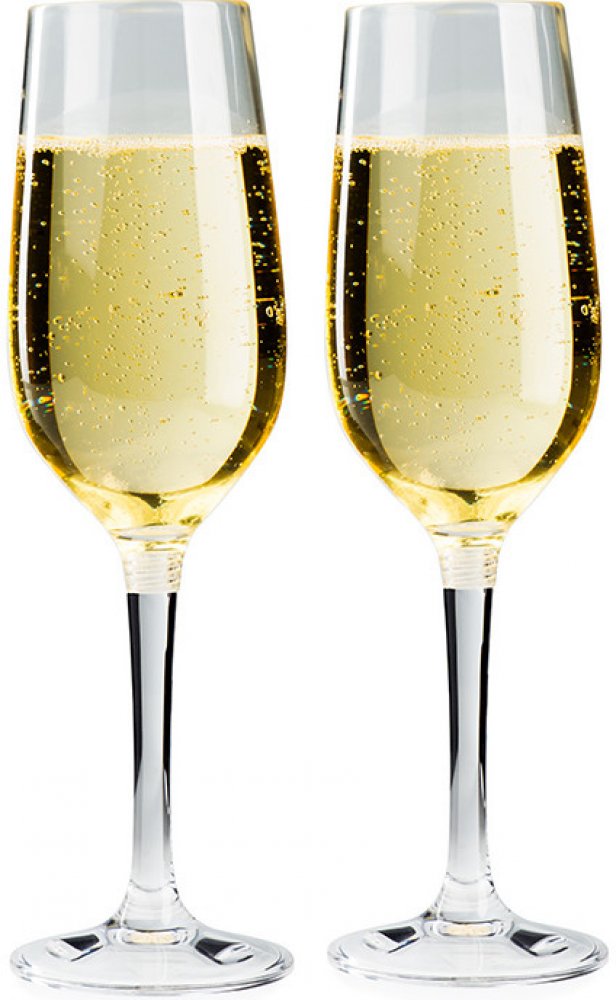Set 2 ks skládacích cestovních plastových skleniček s objemem 2 × 177 ml na šumivé víno. Šroubovací nožičku lze do sklenky jednoduše naklapnout, čímž se pro potřebný transport celá sklenka zpevní a nehrozí tak ulomení nožičky ani promáčknutí sklenky.