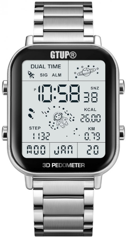 Gtup 1310 jsou špičkové unisex hodinky, které zaujmou propojením stylu a funkčnosti. Materiálem zvoleným k výrobě řemínku je nerezová ocel, což vede k líbivému designu, nikoli však na úkor pohodlí při nošení. Náramkové hodinky GTUP vydrží při opatrném mytí rukou nebo při dešti, sprchování nebo plavání je ale poškodí. Jejich stupeň krytí nese označení 30 m (3 ATM). Nejdůležitější přednosti unisex hodinek Gtup 1310 Maximální délka řemínku je 23 cm Nechybí ani funkce stopek Základní funkcí hodinek Gtup 1310 je zobrazení data Řemínek tvoří nerezová ocel Úroveň vodotěsnosti hodinek GTUP: 30 m (3 ATM) Barva ciferníku: stříbrná Řemínek má barvu: stříbrná Hodinky Gtup 1310 mají i další funkci Výrobce nezapomněl ani na starý dobrý budík. Na všechny důležité schůzky tak přijdete pokaždé včas. Pokud zrovna potřebujete stopnou určitý čas, nabízí hodinky funkci stopek.