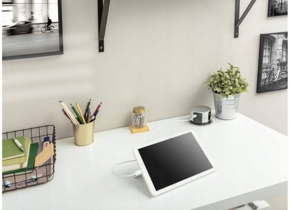Zásuvka stolní vestavěná výsuvná, COMFORT 100mm, 3x zásuvka s uzemněním, 2x USB 2,4A, alu, kabel 1,5m se zástrčkou .