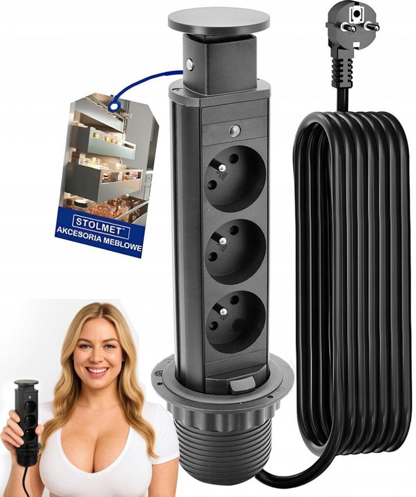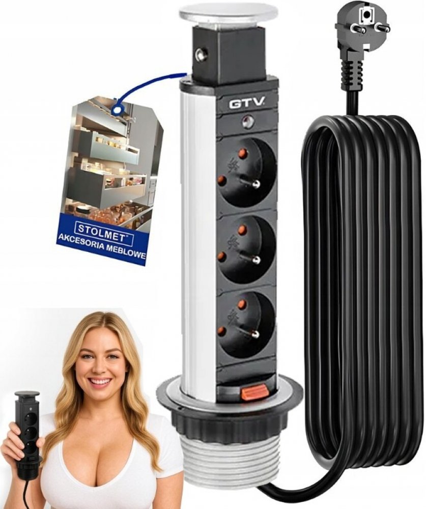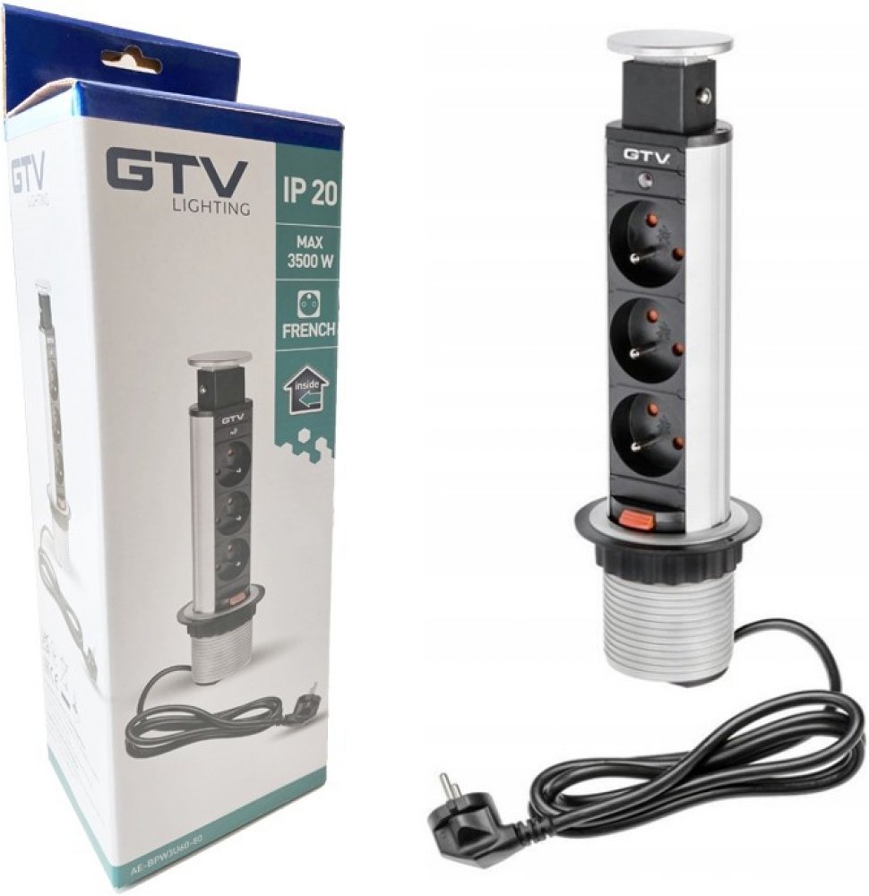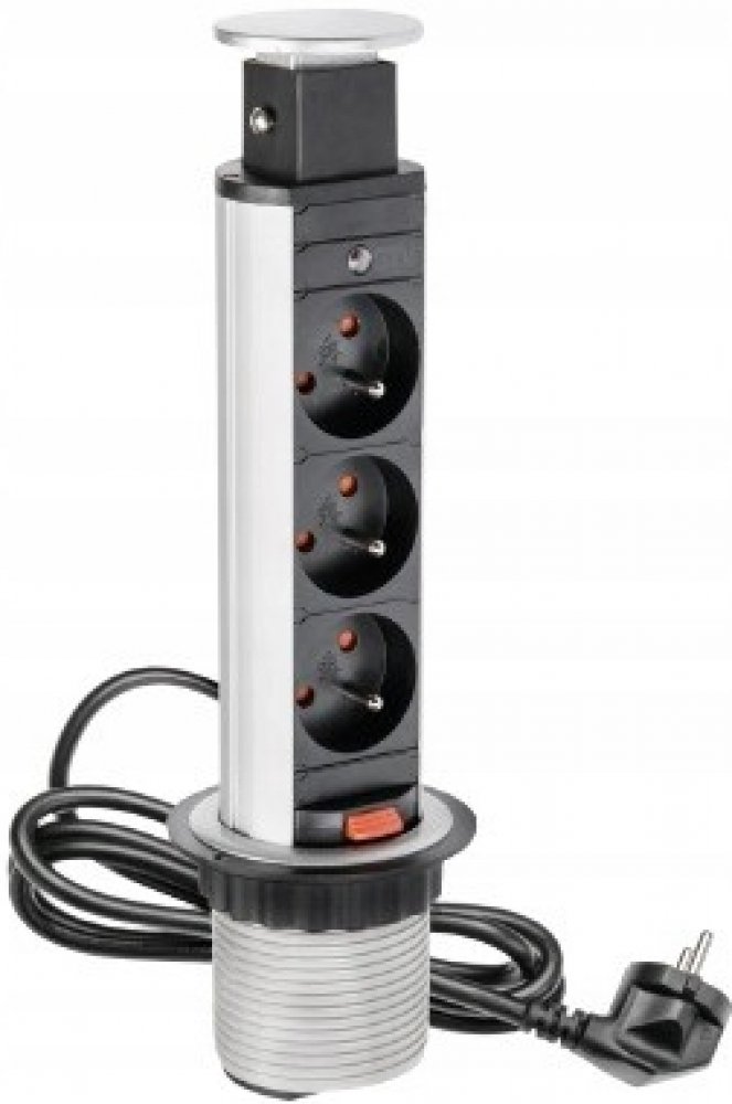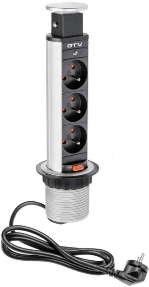 Charakteristika produktu Výsuvná zásuvka do kuchyně GTV 3 X 220 V, KABEL 1,5M stříbrná