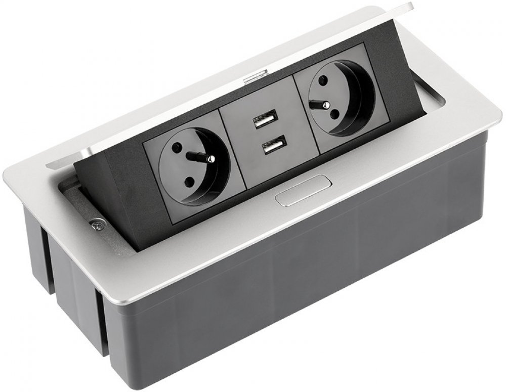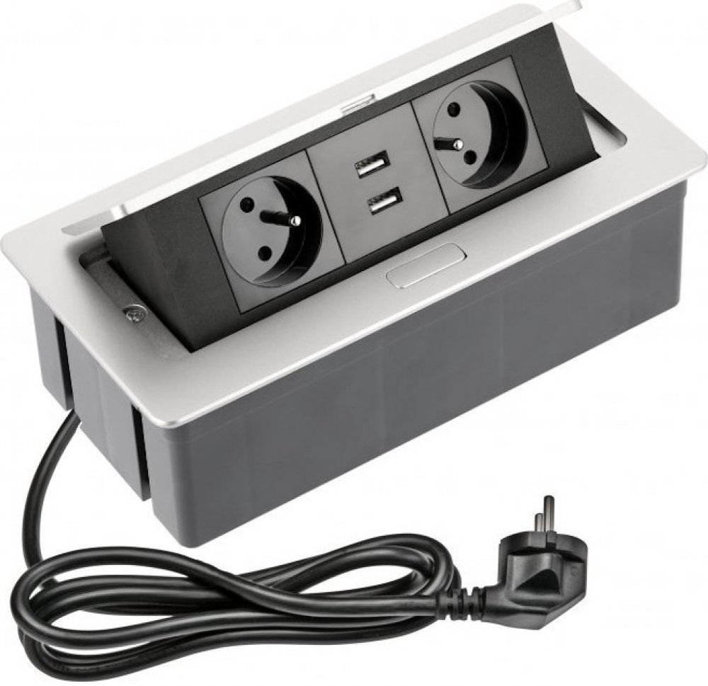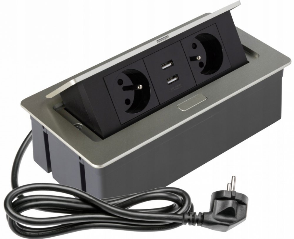Nábytková zásuvková lišta výklopná je skvělá pomůcka pro kuchyňské nebo pracovní desky. Využijete ji také jako součást kancelářských stolů. Lišta umožňuje snadné připojení elektrických spotřebičů bez složitého hledání zásuvky a diskrétní ukrytí kabelů. Tato zásuvková lišta zahrnuje dvě zásuvky a dva USB výstupy, které se vysunou z ochranného pouzdra po lehkém zatlačení jejího krytu. Napájené zařízení jsou díky přepěťové ochraně a ochraně před přehřátím v bezpečí.