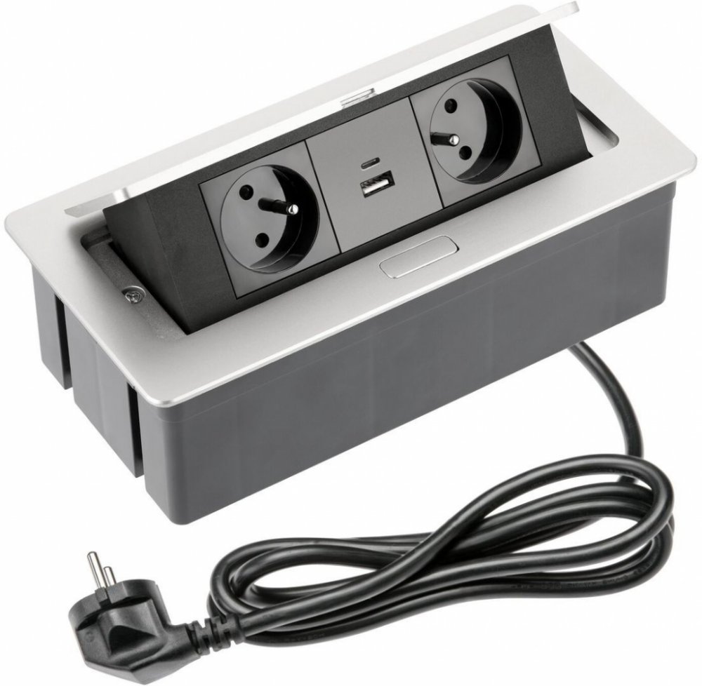 Zásuvková lišta výklopná je moderní a praktické řešení pro připojení elektrických zařízení v domácnosti i kanceláři. Tato zásuvka se snadno instaluje do pracovní desky nebo stolu a nabízí elegantní design, který se bez problémů začlení do jakéhokoli interiéru. Výklopný mechanismus je jednoduchý na ovládání – snadno se otevírá i zavírá, což šetří místo a zajišťuje, že zásuvky jsou viditelné pouze při používání. Umožňuje připojení více zařízení najednou. Set obsahuje 2 zásuvky s uzemněním a USB typ C + USB typ A. Moderní vzhled a kvalitní materiály činí tuto zásuvku atraktivním doplňkem pro každý prostor. Výklopná zásuvka je ideální volbou pro ty, kteří hledají funkční a estetické řešení pro napájení svých zařízení, aniž by zbytečně narušovali vzhled pracovního prostoru. Zásuvková lišta je určena do interiéru.