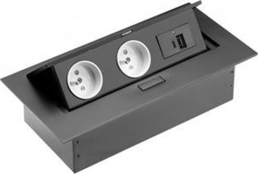 - Výsuvný set 2 zásuvek a 2 USB slotů, který se montuje do pracovního stolu.