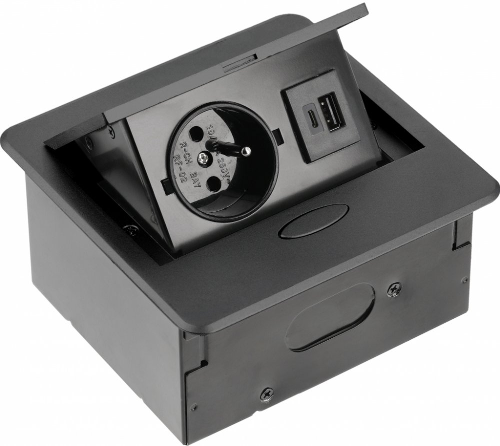 Nábytková zásuvka AVARO • 1x francouzská zásuvka • USB A+C • kabel 1,5 m • černá. Malá, kompaktní zásuvka je ideálním řešením pro malé prostory a splňuje potřebu základních připojení. Avaro lze použít v domácích pracovních stolech, dětských pokojích a kuchyních. Dá se namontovat naopak (pro nástěnné skříňky) nebo stranou (pro boky skříněk a kuchyňské ostrůvky).