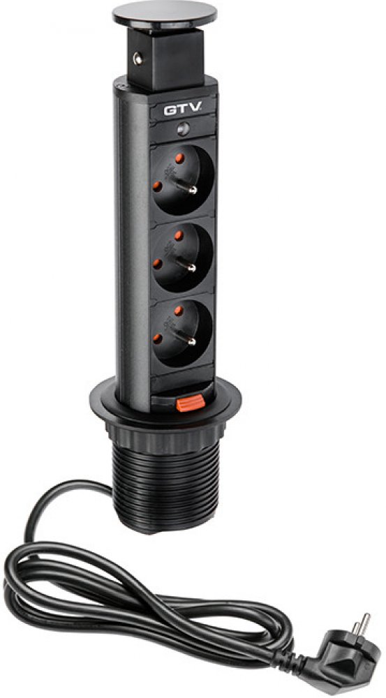 Charakteristika produktu výsuvná zásuvka do kuchyně GTV 3 x 220 V, kabel 1,5m černá