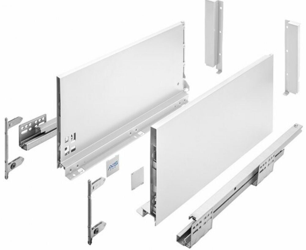 GTV Axis Pro je elegantní zásuvkový systém s hranatou, ultra tenkou bočnicí širokou 14 mm. Tato varianta je v provedení nejvyšší H-199 v barvě bílá.