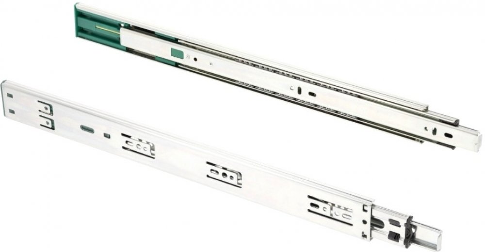 Kuličkový výsuv s tichým a tlumeným zavřením dvířek. Výsuv je testován na 80 tisíc cyklů zavření/otevření. Technické rozměry výsuvu naleznete v obrázcích.