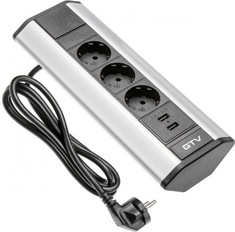 Objednejte si černou rohovou zásuvku GTV Power Port 3×220V + 2×USB a dopřejte si pohodlí a moderní design ve vašem interiéru!