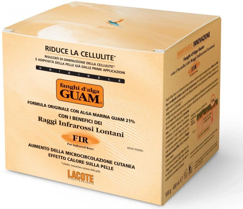 Bahenní zábal na střední celulitidu se vyrábí podle originální receptury s 21% obsahem mořských řas GUAM a využívá výhod vzdáleného infračerveného záření (FIR). To díky svému tepelnému efektu podporuje kožní mikrocirkulaci.