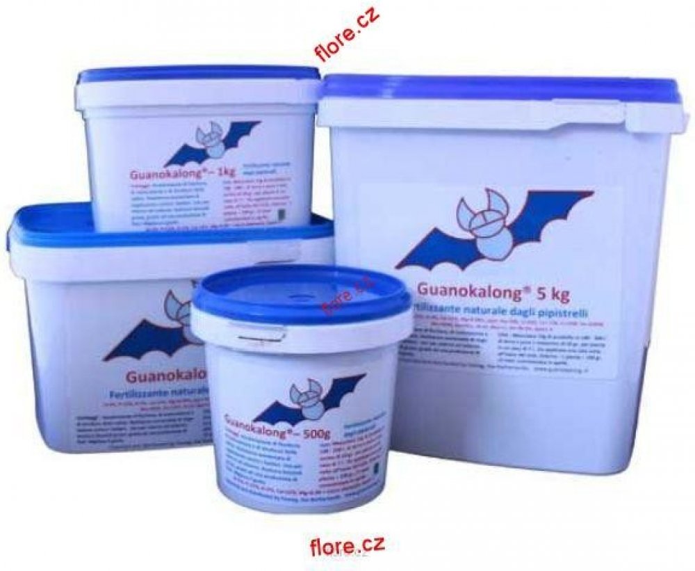 Při používání sypkého hnojiva Guanokalong dochází k postupnému uvolňování živin, zlepšují se tepelné a vzdušné vlastnosti půdy a půdní struktura. To vše vede k dobrému prokořenění rostlin. Zvyšuje se podíl humusu v půdě a přispívá k vyšší úrodnosti. Obsahuje všechny důležité makroživiny (N, P, K, Ca, Mg) a stopové prvky (např. Fe, Mn, Mo, Zn, Cu). Toto hnojivo lze použít do nového substrátu, ale zároveň s ním lze „oživit“ již použitý substrát.Použití: V prvním týdnu smíchejte 1 kg se 100 až