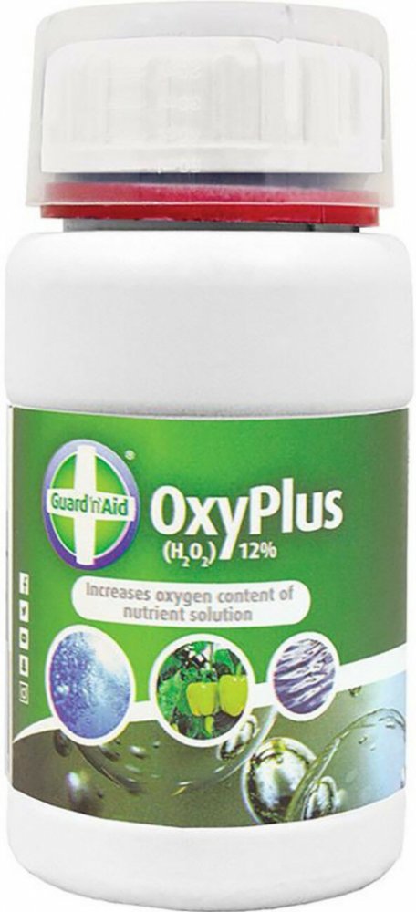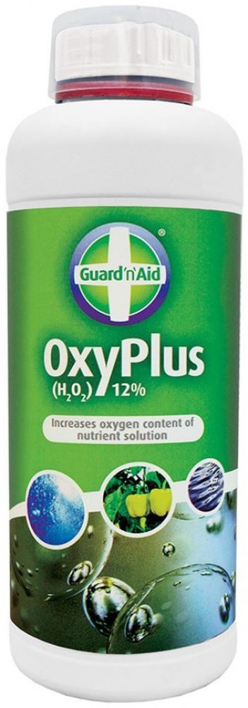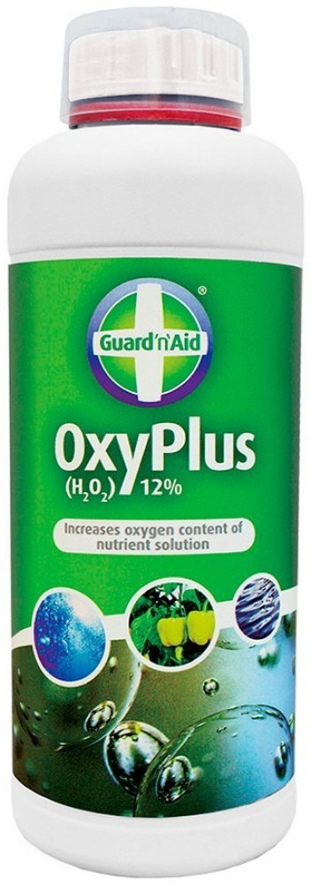 Guard'n'Aid OxyPlus (H2O2) -12% 1L je peroxid který lze použít u hydroponického systému ke zvýšení obsahu kyslíku a k udržení čistoty systému nebo ke sterilizaci půdy. Tento prostředek lze rovněž použít jako látky pro prevenci před Pythiem.