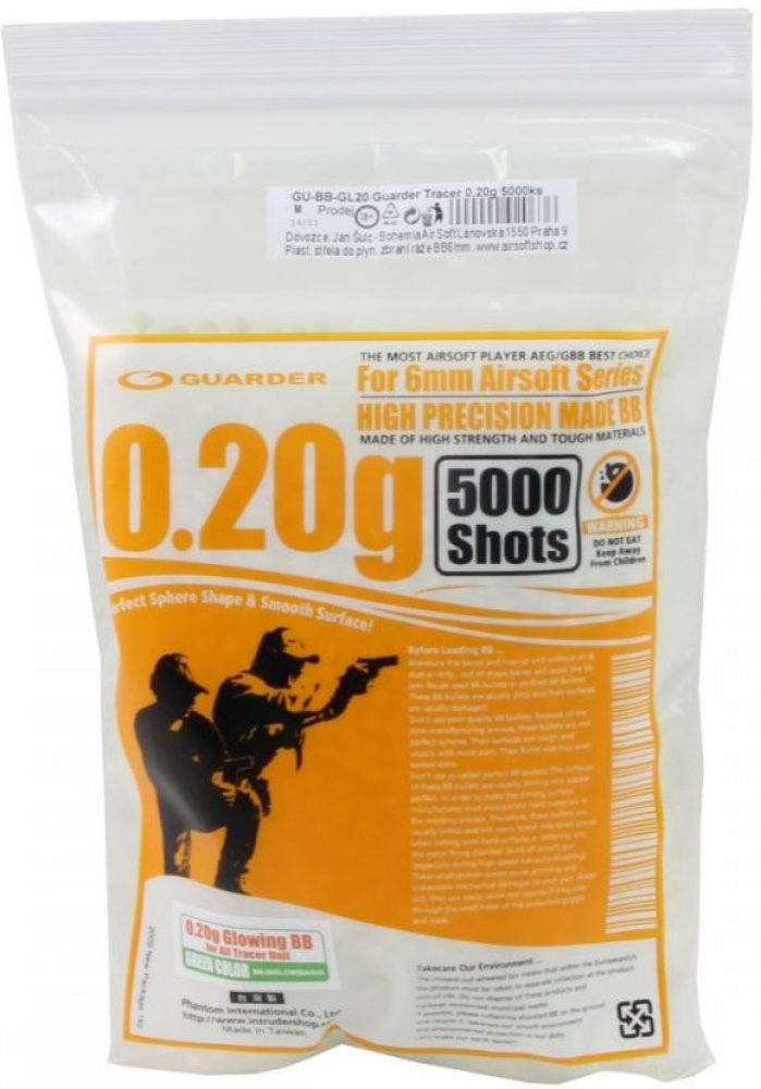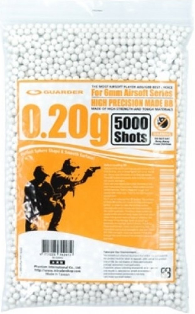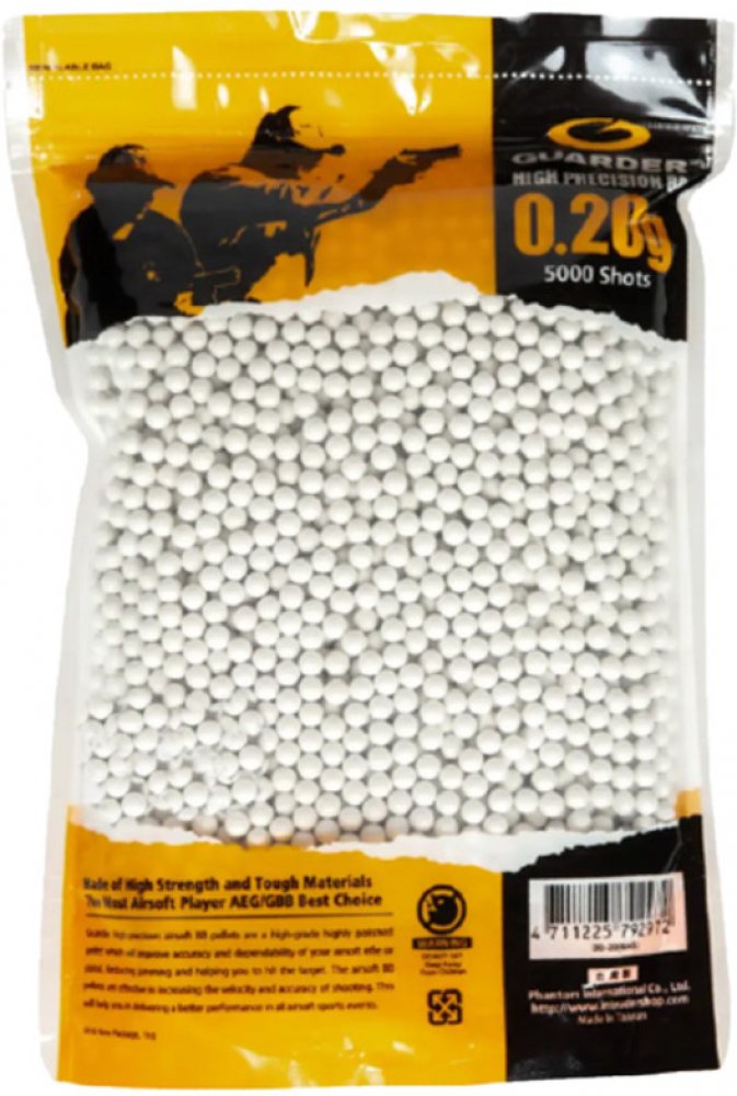 Kuličky Guarder 0,20g jsou velmi kvalitní kuličky vyrobené na Taiwanu. Díky velmi přesné toleranci jsou vhodné pro všechny typy zbraní, včetně zbraní s těsnými hlavněmi.