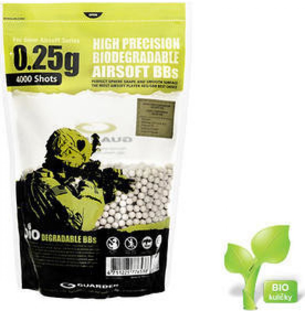 Biologicky rozložitelné kuličky GUARDER, které jsou považovány za jedny z nejlepších na světě. Poměr kvality, ceny a výkonu jsou vhodné pro všechny typy zbraní. Kuličky nabízejí velice kvalitní povrchovou úpravu.