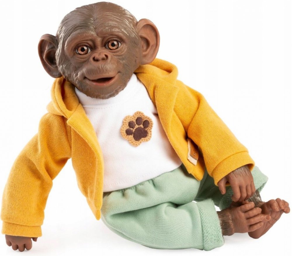 Opičí miminko je polohovací a může i sedět nebo se dá pověsit za ruce nebo nohy.