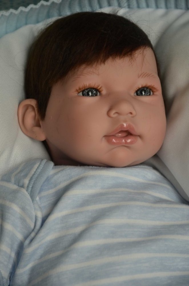 Reborn miminko holčička Mario je 46 cm dlouhá, váží 1,750 kg. Má látkové tělíčko, končetiny a hlavičku z měkkého vinylu, má krátké světle hnědé vlásky, jako skutečné miminko, ozdobené malinkou mašličkou. Očička má akrylová. Leží na měkkém polštářku.