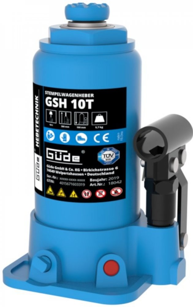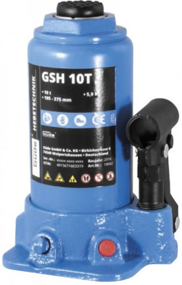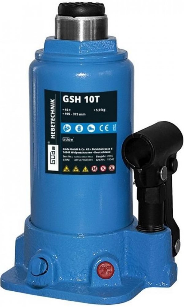 Güde 10 t hydraulické 195 mm 375 mm lahvové (pístové) 5.8 kg litinové 1 320 mm ruční (manuální)